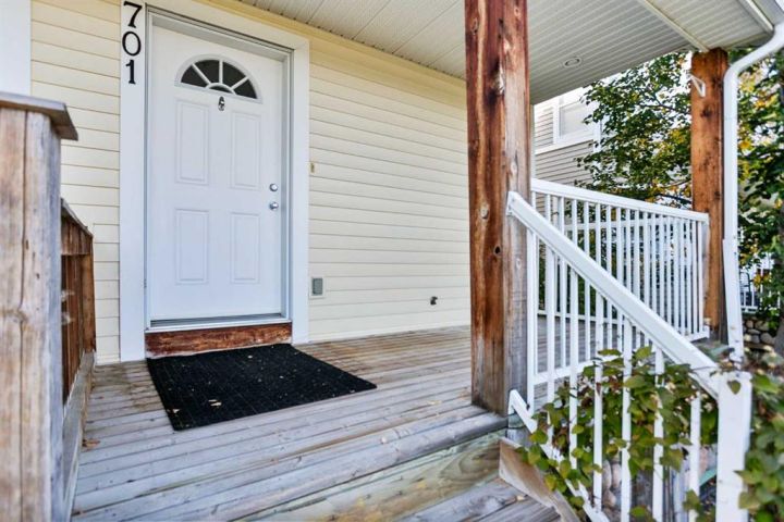 Welcome to this beautifully maintained condo in one of the best locations Prairie Sound has to offer. Perfectly situated in a quiet spot facing the schoolyard, this home is just steps from High Park Boulevard and scenic Highwood Lake. Inside, you’ll find an inviting open-concept layout featuring a spacious living room with brand new, durable laminate flooring, and a bright dining area that opens onto a sunny south-facing deck — ideal for morning coffee or evening relaxation. Upstairs, both bedrooms are generously sized, each with its own private ensuite bathroom, offering comfort and convenience for families or roommates. The second-floor laundry adds to the practicality of this well-designed home. Enjoy the charm of the shady front verandah and the convenience of an attached garage plus driveway parking for a second vehicle. The home is in excellent condition and located just steps away from the spray park, Happy Trails, Notre Dame School, a local convenience store, and beautiful Highwood Lake Park. Be sure to click the multimedia tab for an interactive 3D virtual tour and detailed floor plans — and come experience this wonderful home for yourself!