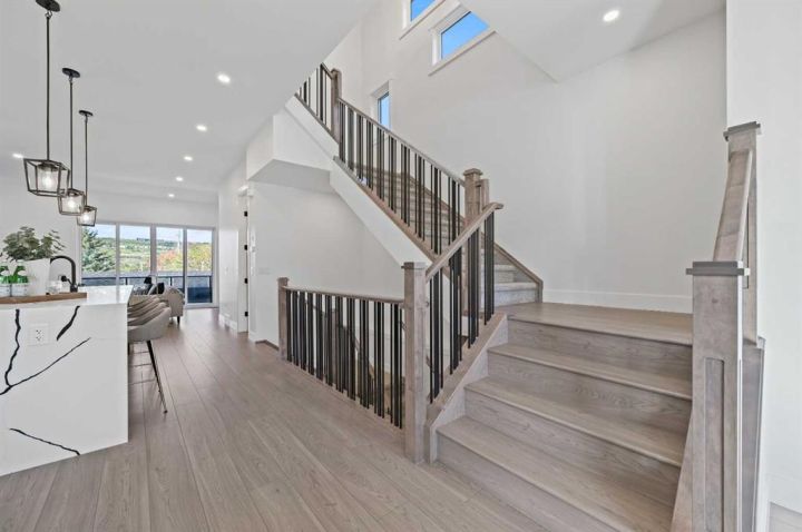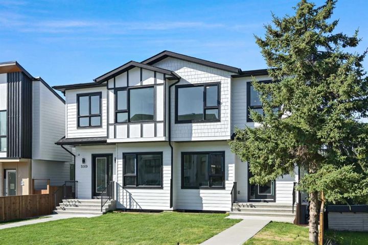 Welcome to an amazing inner city location and offering a brand new semi-detached masterpiece, built and crafted by a small quality builder!! This a very exclusive location, unveiling wonderful south river valley escarpment views from the new "Transitional Styled" and open floor plan will be sure to please the most discriminating buyers. The fully developed walk-out two story encompasses 2,900 sqft of total living space, featuring a total of four bedrooms, three and half baths, 10ft ceilings, floor to ceiling two tone luxurious kitchen cabinets and a stunning waterfall quartz center island. The main floor family room has a stylish linear fireplace and walk-out to a large 20ft wide south balcony. The upper level includes three good sized bedrooms, 4-pce bathroom, a quiet sitting/gathering room c/w media outlets and an amazing primary bedroom retreat. The primary bedroom offers picturesque south river valley views and from the spa like 5-pce ensuite, including a floor to ceiling tiled shower and a separate soaking tub. Conveniently located upstairs is a spacious laundry room and separate laundry sink. The fully developed and bright walk-out level promotes the fourth bedroom, another 4-pce bath, a gorgeous wet bar in the games room and patio doors to a large south and private poured concrete patio. The detached double garage is equipped with an electric car plug-in and media outlets. The house temperature is maintained by a central air conditioner. Excellent location on a very quiet street just steps to the Bow river and the Bow river bike path system. The U of C and Market Mall are only a couple minutes away, a short commute to downtown and easy access west to the mountains. The other side 5009 21st Avenue is sold! Hurry on this one!