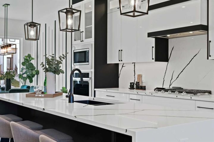 Bar, Bookcases, Breakfast Bar, Built-in Features, Closet Organizers, High Ceilings, Kitchen Island, Open Floorplan, Quartz Counters, Vinyl Windows, Wet Bar