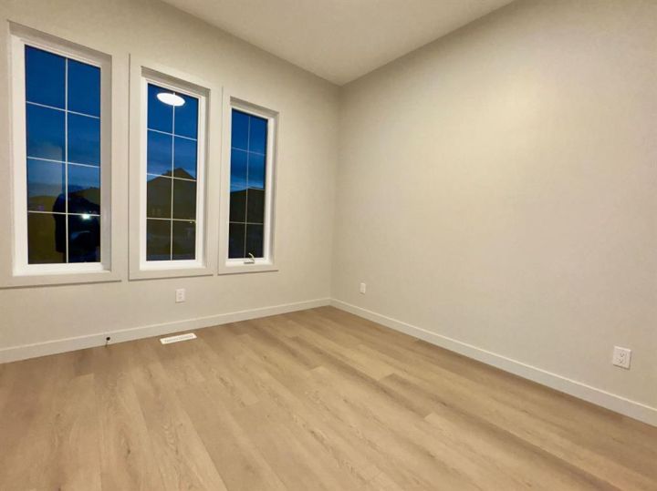 Absolutely gorgeous executive bungalow in the sought-after community of ‘Bridges of Langdon’! This home boasts a triple garage, soaring vaulted ceilings, and beautiful smooth flooring throughout. The dream kitchen features quartz counters, you’ll love the colour, a spacious sit-up island with seating for 4-5, don’t forget the huge walk-in pantry. The bright living room showcases sleek architectural shelving and a modern fireplace, windows and patio doors lead you to a lovely private deck. The dining area is filled with natural light and a fantastic spot for entertaining. The vaulted master retreat offers a large window, spa-inspired 5-pc ensuite, and walk-in closet. A versatile second bedroom or office, full bath, and laundry room complete the main floor. Stylish, functional, and move-in ready! Get away and live in tranquility, with only a 10 minute drive to Stoney Trail! Close to schools, shopping and all your families needs!