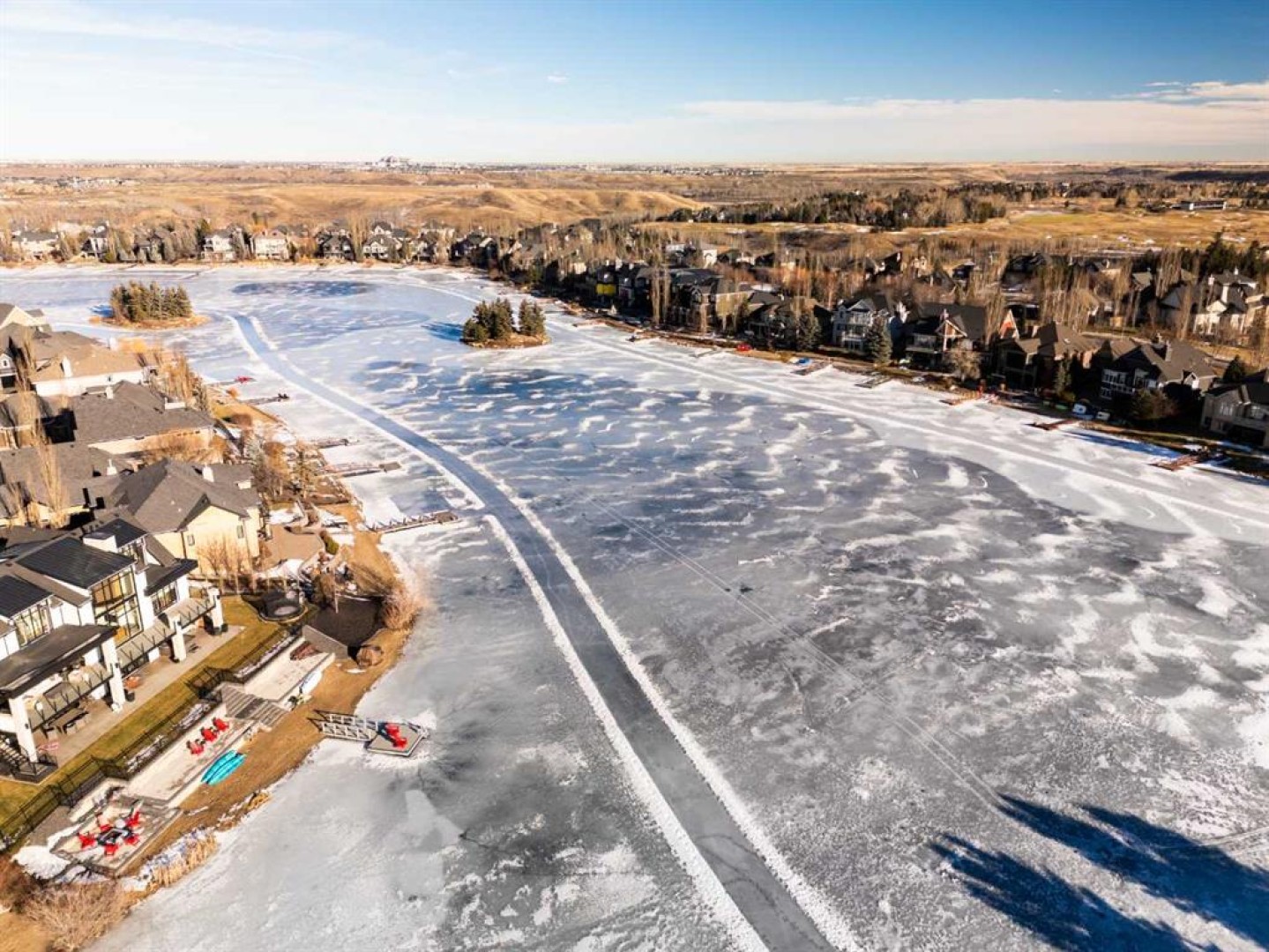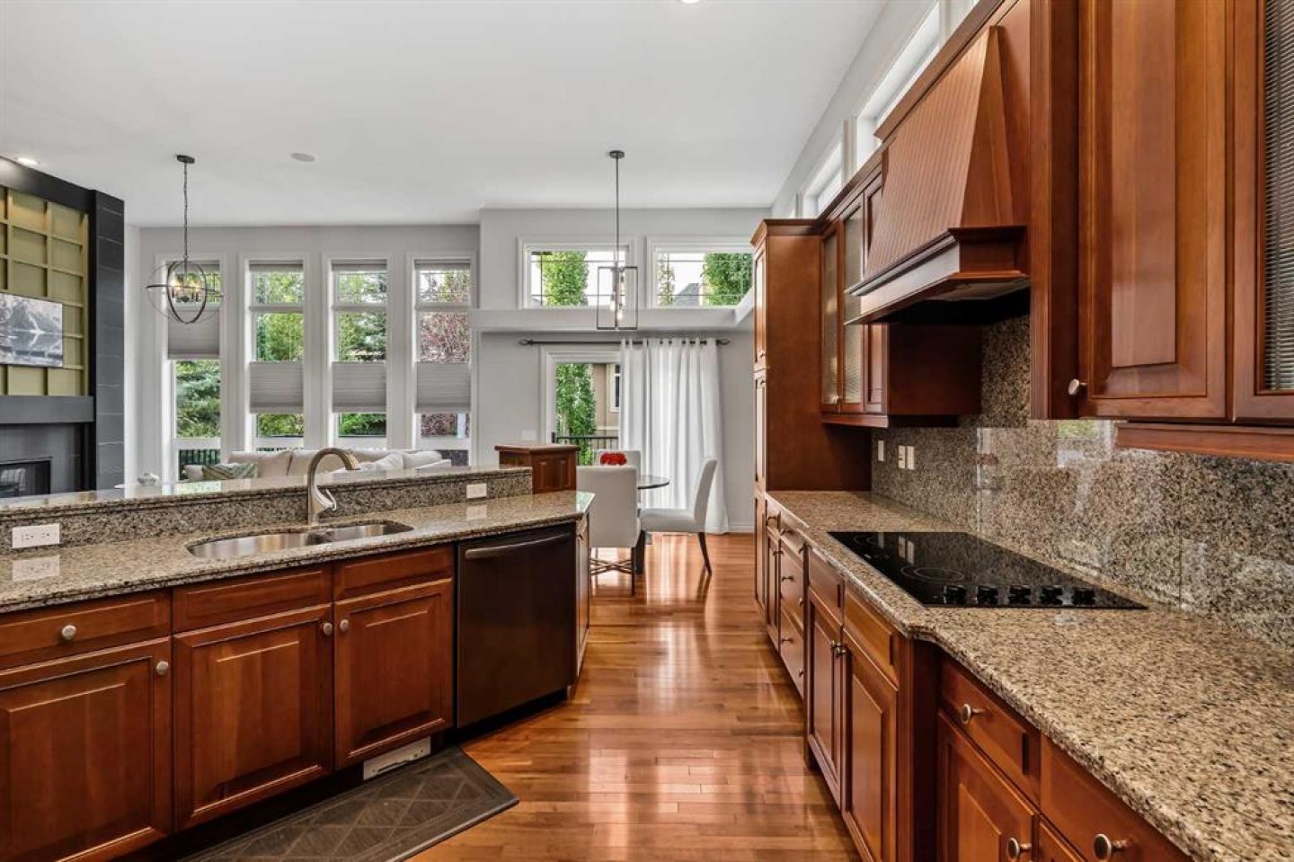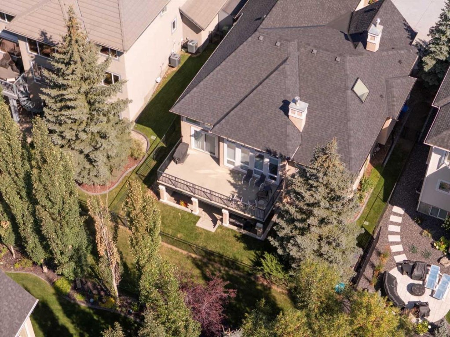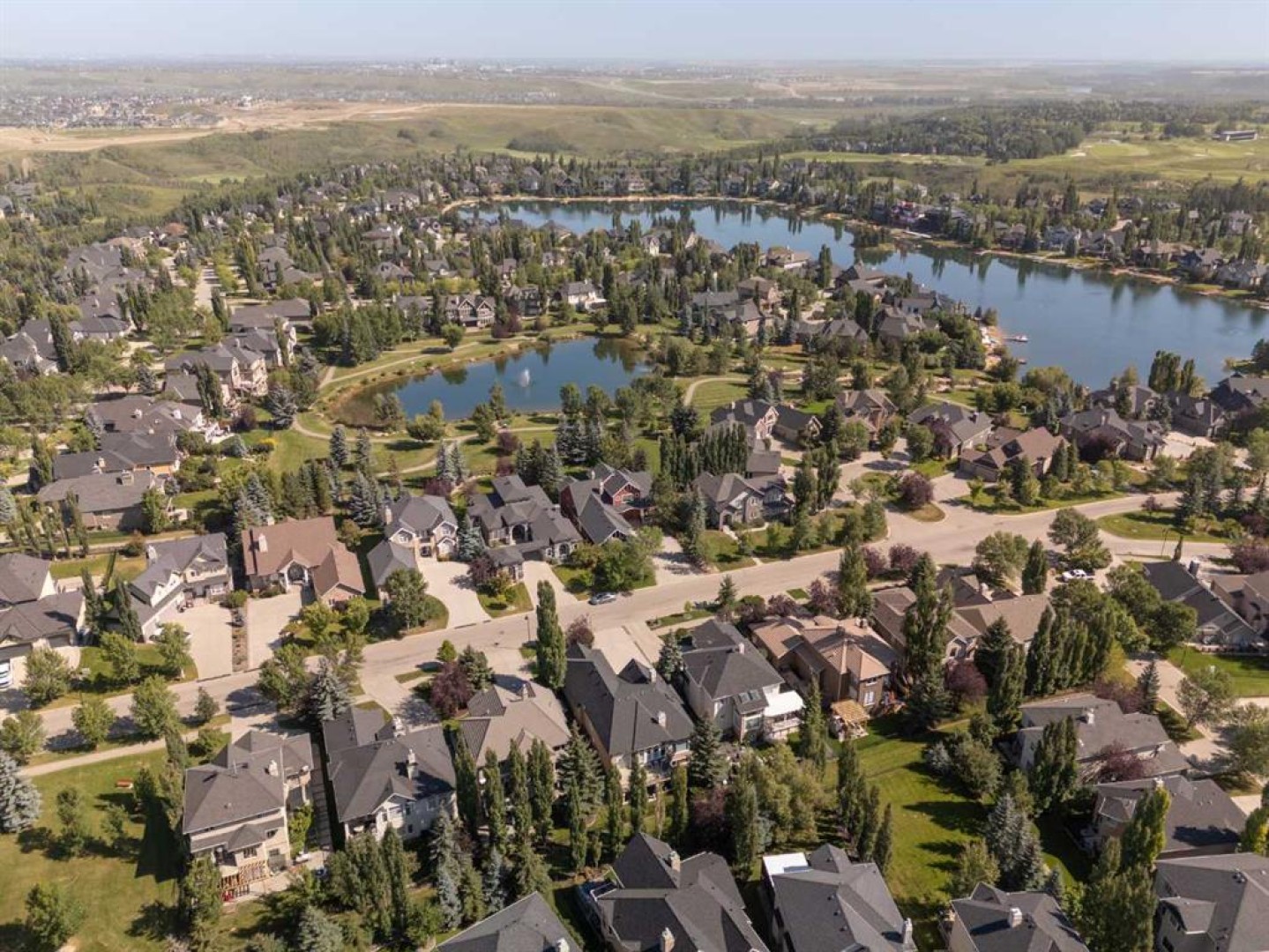 Luxurious, fully finished & beautifully updated, this walkout bungalow showcases exceptional craftsmanship & refined design throughout. Stunning curb appeal sets the tone, highlighted by an oversized double garage with in-floor heating and built-in speakers. Set within the picturesque lake community of Heritage Pointe & backing directly onto green space, the setting delivers privacy, views & a calm connection to nature rarely found so close to the city, with added peace of mind from the community’s independent water system and a full alarm system. Inside, soaring 12’ ceilings & an abundance of natural light elevate the main level, complemented by exotic cherry hardwood flooring & updated lighting for a warm, cohesive flow. A dedicated den with floor-to-ceiling built-ins offers an ideal home office, while a formal dining room framed by tray ceilings creates an elegant setting for hosting with built-in speakers. The open-concept layout unfolds with expansive windows, drawing the outdoors in. At the heart of the home, the chef’s kitchen impresses with granite countertops, custom cabinetry, stainless steel appliances & a large breakfast bar island. Adjacent dining adds everyday flexibility, while patio sliders open to the upper deck for effortless outdoor entertaining. Anchoring the main level, a spectacular living room centers around a striking fireplace with built-in speakers, creating an inviting space to unwind. The private primary suite is a true retreat, featuring a tray ceiling, oversized window, walk-in closet & a beautifully updated ensuite complete with an oversized skylight, deep jetted tub, oversized glass shower, heated floors, built-in speakers & dual vanities. A discreet powder room adds convenience. The walkout lower level is an entertainer’s dream, offering a spacious family room with built-in media area, gas fireplace, integrated storage & elevated seating, with built-in speakers throughout the family room and flex space. A pub-style wet bar with raised seating & a built-in wine cellar is ideal for entertaining, while an additional flex space suits fitness or hobbies. Two bedrooms & a 4-piece bathroom complete this level. Outdoor living continues with a covered lower patio overlooking green space, complemented by an easy-maintenance west-facing backyard with underground sprinklers and a garden shed. Located in sought-after Heritage Pointe, residents enjoy access to a private lake with sandy beach, parks, playgrounds & scenic pathways, all close to schools, shopping & dining, making this an exceptional opportunity to experience refined living in a truly special setting.
