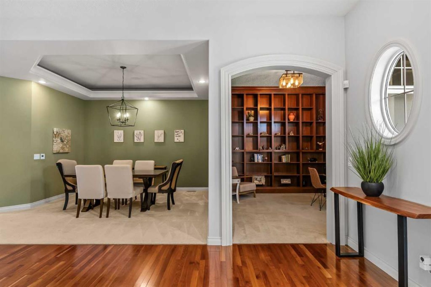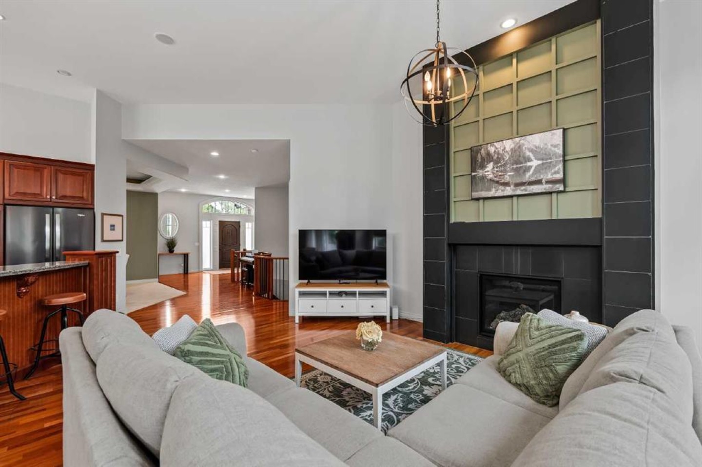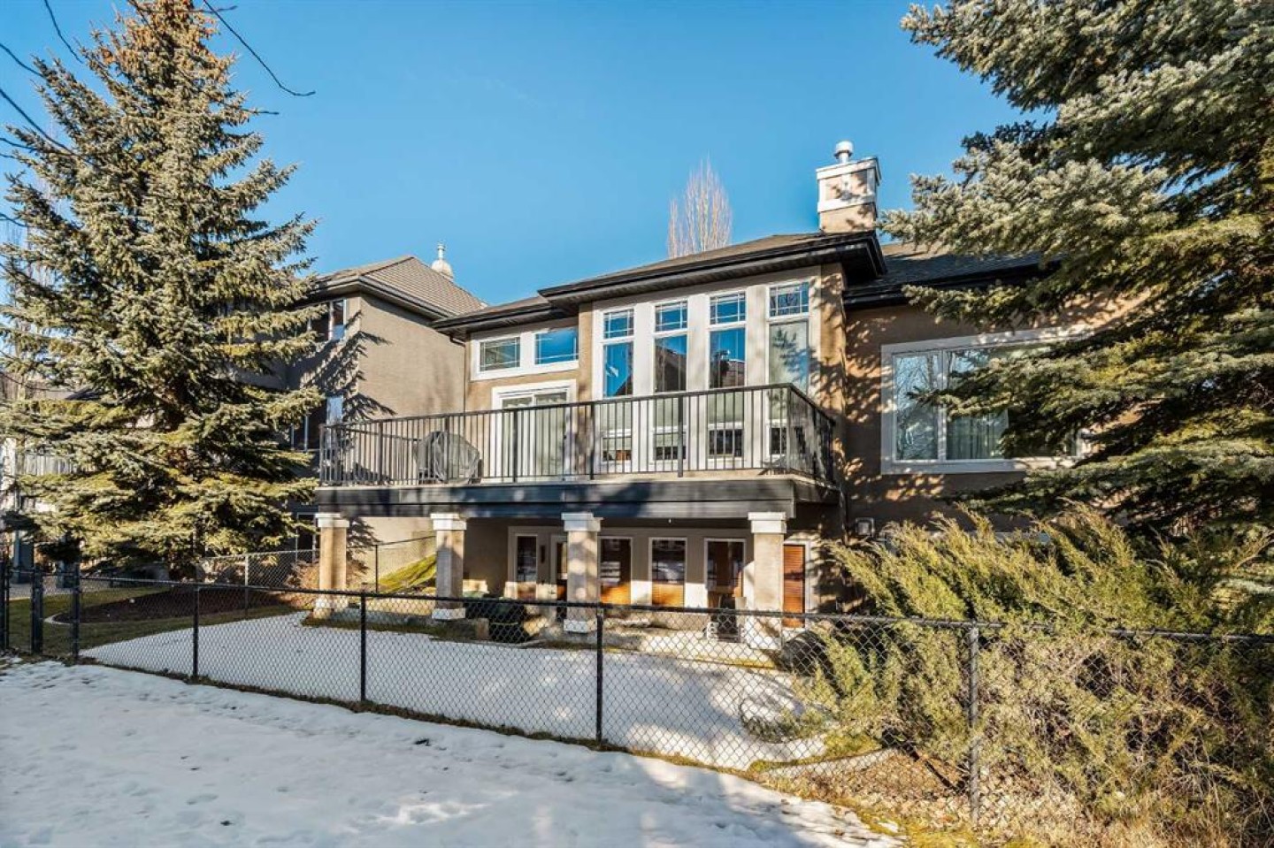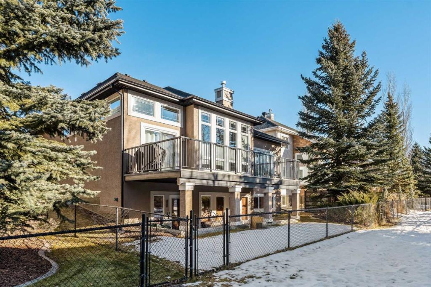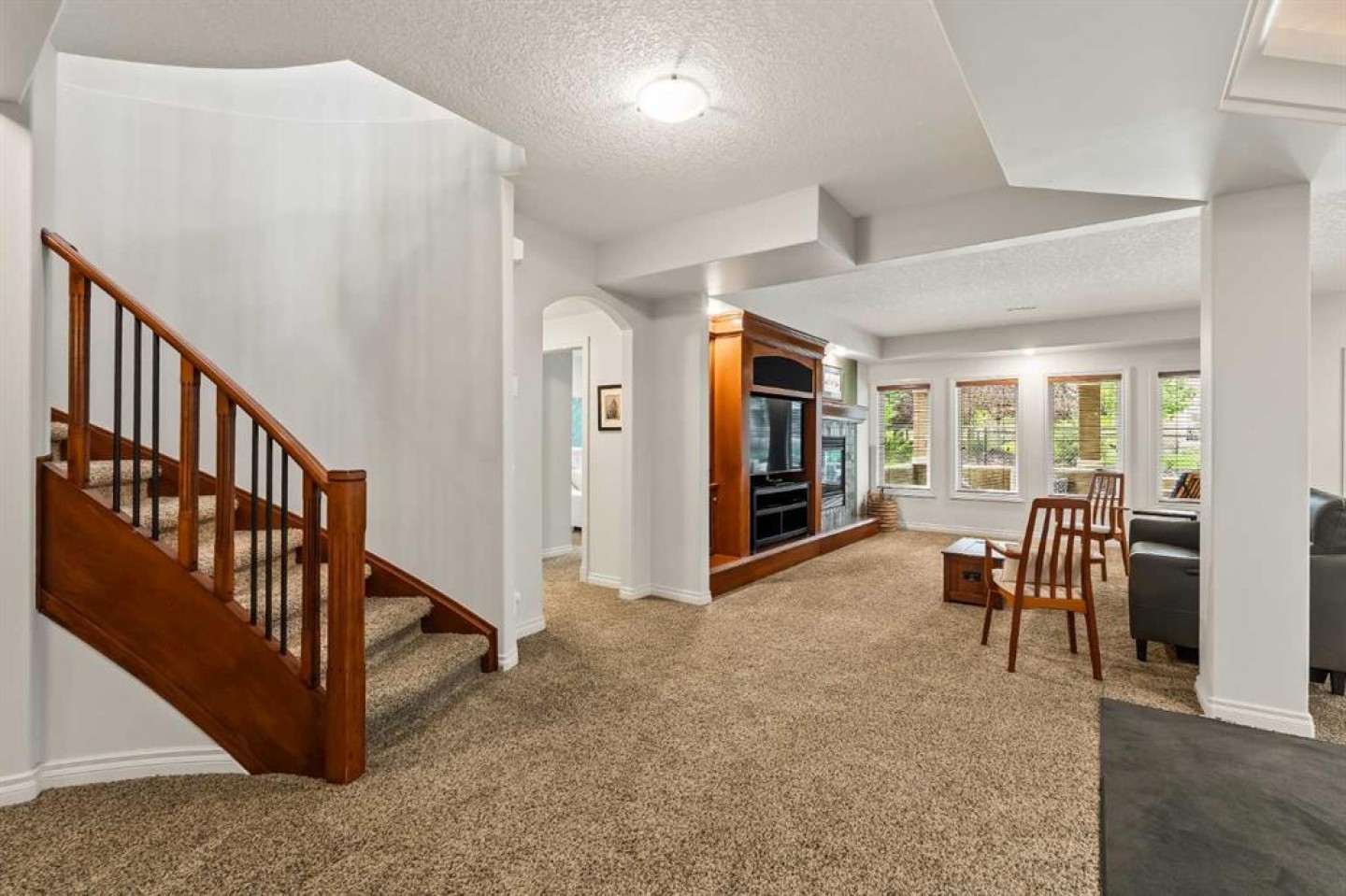Luxurious, fully finished & beautifully updated, this walkout bungalow showcases exceptional craftsmanship & refined design throughout. Stunning curb appeal sets the tone, highlighted by an oversized double garage with in-floor heating and built-in speakers. Set within the picturesque lake community of Heritage Pointe & backing directly onto green space, the setting delivers privacy, views & a calm connection to nature rarely found so close to the city, with added peace of mind from the community’s independent water system and a full alarm system. Inside, soaring 12’ ceilings & an abundance of natural light elevate the main level, complemented by exotic cherry hardwood flooring & updated lighting for a warm, cohesive flow. A dedicated den with floor-to-ceiling built-ins offers an ideal home office, while a formal dining room framed by tray ceilings creates an elegant setting for hosting with built-in speakers. The open-concept layout unfolds with expansive windows, drawing the outdoors in. At the heart of the home, the chef’s kitchen impresses with granite countertops, custom cabinetry, stainless steel appliances & a large breakfast bar island. Adjacent dining adds everyday flexibility, while patio sliders open to the upper deck for effortless outdoor entertaining. Anchoring the main level, a spectacular living room centers around a striking fireplace with built-in speakers, creating an inviting space to unwind. The private primary suite is a true retreat, featuring a tray ceiling, oversized window, walk-in closet & a beautifully updated ensuite complete with an oversized skylight, deep jetted tub, oversized glass shower, heated floors, built-in speakers & dual vanities. A discreet powder room adds convenience. The walkout lower level is an entertainer’s dream, offering a spacious family room with built-in media area, gas fireplace, integrated storage & elevated seating, with built-in speakers throughout the family room and flex space. A pub-style wet bar with raised seating & a built-in wine cellar is ideal for entertaining, while an additional flex space suits fitness or hobbies. Two bedrooms & a 4-piece bathroom complete this level. Outdoor living continues with a covered lower patio overlooking green space, complemented by an easy-maintenance west-facing backyard with underground sprinklers and a garden shed. Located in sought-after Heritage Pointe, residents enjoy access to a private lake with sandy beach, parks, playgrounds & scenic pathways, all close to schools, shopping & dining, making this an exceptional opportunity to experience refined living in a truly special setting.