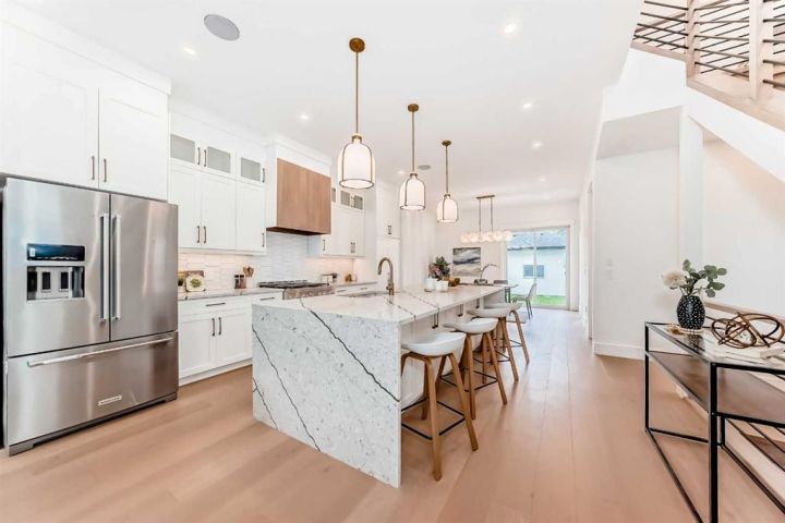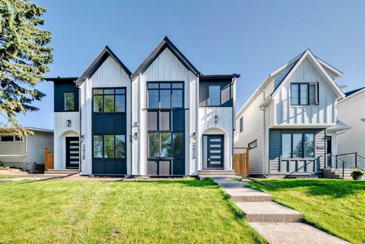 ** OPEN HOUSE: Monday, October 20th 4-6pm ** Welcome to 2426 53 Ave – A Perfect Blend of Modern Design and Community Living. Nestled in one of the area’s most desirable and family-friendly neighborhoods, this newly built home offers the ideal combination of style, functionality, and location. With over 1,900 sq. ft. above grade, this thoughtfully designed property features 4 bedrooms and 3.5 bathrooms, providing ample space for both everyday living and entertaining. Step inside to an open and welcoming living room complete with custom built-ins and a cozy fireplace – perfect for family gatherings or quiet evenings in. At the heart of the home is the gourmet kitchen, outfitted with full-height cabinetry, a large quartz island, high-end appliances, and sleek quartz countertops. Adjacent to the dining area, sliding patio doors open to a sunny back deck, seamlessly blending indoor and outdoor living. The main floor also includes a practical mudroom and a stylish powder room for added convenience. Upstairs, the primary suite offers a true retreat with a vaulted ceiling, feature wall, walk-in closet, and a spa-inspired ensuite complete with soaker tub, dual vanities, and a walk-in shower. Two additional bedrooms, a full bathroom, laundry room, and built-in desk make the upper level as functional as it is beautiful. The fully finished basement offers even more living space, featuring a second living room with built-ins and electric fireplace, wet bar, home gym, fourth bedroom with walk-in closet, and a full bathroom – perfect for guests, teens, or extended family. Outside, enjoy a landscaped and fenced backyard with space to relax or entertain, and a double detached garage for secure parking and additional storage. Located in a vibrant community with parks, schools, and amenities nearby, this home also offers quick and easy access to Crowchild Trail—making your daily commute or weekend plans stress-free. Measurements and photos are from unit next door (2424 53 Ave SW).
