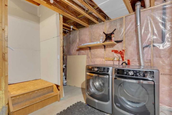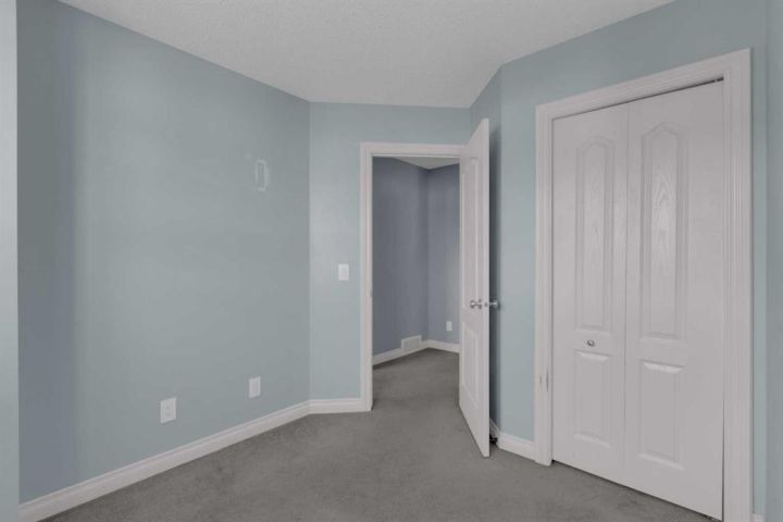 END UNIT! 3 bedrooms, 1.5 bathrooms, 2 PARKING STALLS & LOW FEES! With freshly cleaned carpets, a new coat of paint, a perfect layout and a cute backyard this home has it all! Stepping inside the front entrance you are welcomed by a bright and airy open-concept layout with modern finishings/colours, 9 foot ceilings and huge windows that fill the home with natural light throughout the day. The living area has plenty of space for big comfy furniture to watch movies or relax in front of the fireplace. The U-shaped kitchen features ample counter space and seating for guests, plenty of cabinetry and a new dishwasher. Adjacent to the kitchen is a dining area with a lovely window that overlooks the south-facing backyard, this nook is the coziest spot for morning coffee! This area also leads to a fenced backyard with a large mature tree that provides privacy to enjoy summer evenings on the (concrete) patio. The main floor is completed with a 2 piece powder room and a coat closet at the front door. On the south side of the second level you will find a huge primary bedroom with an awesome flex area that would make a perfect reading nook or glam station. This private retreat overlooks the backyard, boasts a big walk-in closet, and features a cheater ensuite door to a four piece bathroom with deep soaker tub. The second level is completed by two more bedrooms on the north side of the home (nicely separated from the primary bedroom) and large linen closet. The basement houses a newer washer and dryer, and features a big window and bathroom rough-in for future development. Right outside the door are two parking stalls with plug-in and plenty of visitor parking. This home is a 5 minute walk to the elementary school and a 3 minute drive to all amenities such as health services, rec center/pool, arena, groceries, hardware stores and retail. BONUS: hot water tank replaced in 2024.