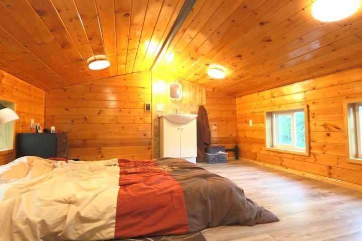 This recently completed, self-sufficient home is a true gem, combining exceptional privacy with modern amenities in a compact yet thoughtfully designed package. It can be the ideal getaway or primary residence, all while being completely off the grid (could easily be converted to on-grid) and not being bothered with any utility bills in your mail. The beautiful 2+ acre lot in a great neighborhood offers a second building side, backs up to open fields and has a gorgeous large fish pound roughed in. Equipped with in-floor heat, a versatile multi-fuel heating stove, gas stove, fridge/freezer, a tankless water heater, a 31"x30" shower, a washing machine, and a high-end indoor waterless toilet on hand (not yet installed), this home ensures comfort and convenience. Additional features include upper floor plumbing/sink, vaulted ceilings, a ceiling fan and the bright LED lighting throughout the interior and exterior enhances the ambiance. The loft offers a stunning view of the lake and can easily be transformed into two smaller bedrooms. Designed with solar power in mind from the very beginning, the solar panels produce ample energy even during the shorter winter days, with a solar controller that efficiently manages heavy-duty batteries and monitors solar performance. The interiors boast natural lacquered pine finishes, vinyl plank flooring, and ceramic tiles in the kitchen, bathroom and entrance. Energy-efficient windows flood the space with natural light, complete with privacy blinds on the main floor. The exterior features a striking "shou sugi ban" wood style, ensuring durability and longevity. A metal roof and matching soffit and fascia contribute to the home's luxurious look. A retractable 8'x11'awning extends over a charming porch, complete with a plumbed-in barbecue for outdoor entertaining. The home entrance is sheltered by a covered porch that not only provides protection but also supports solar panels, featuring shelves and overhead hooks for organizing tools like solar panel snow rakes. There’s also room to expand with additional and included solar panels in the future if desired. You’ll find an insulated root cellar measuring 8'x12', perfect for a variety of uses. In addition, an outhouse equipped with a motion sensor light is conveniently located nearby. The 2.02-acre lot slopes to the east and is adorned with numerous native trees, a large garden plot, a roughed-in 40'x70' fishpond and vibrant wildlife. The owner has thoughtfully planted a variety of fruit bushes, trees, and evergreens. For extra storage, there is a 20' sea container with steel shelving. Included with the home are a range of tools, also spare solar panels and batteries, backup inverter generator, and an extensive collection of yard tools. Despite the low maintenance design, there is a set of technical drawings and manuals to assist future maintenance. This beautiful and truly unique lake property is located within easy commuting distance to Camrose, Wetaskiwin and Ponoka.