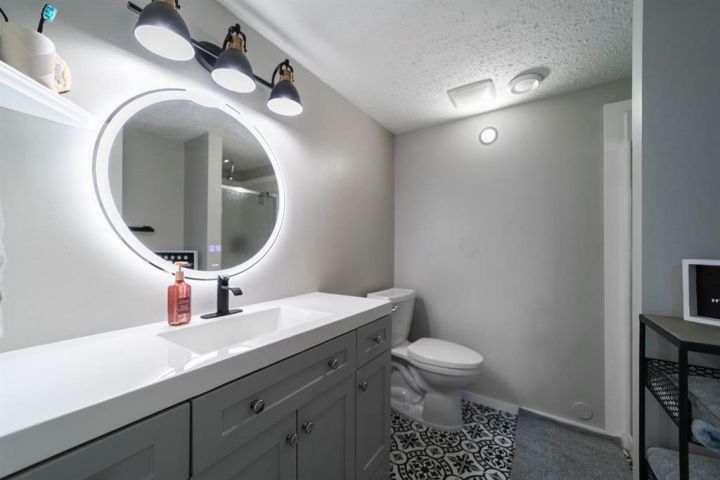 Nestled in the desirable community of Southwest Meadows, is this stunning completely renovated 2 storey dream home. The open concept design is perfect for entertaining, with a spacious living room, dining area, and a bright kitchen with modern cabinetry, quartz counters, vinyl plank floor, walk-in pantry and centre island. Also on the main floor you will find a powder room, laundry area and patio doors that lead you to the back deck for your West facing fantastic view. Upstairs, you'll find a den/office area(or 4th bedroom), bonus space, 3 bedrooms, and a additional 4pc bathroom. The primary suite is an elegant space to unwind from the day. It includes an amazing and thoughtfully designed walk-in closet and a luxurious 4-piece ensuite with soaker tub. The lower level is finished and includes a family room, bedroom and 3pc bathroom. With a fenced landscaped yard with no neighbours behind, large deck, shed, A/C, double heated garage and much more, this home is perfect for growing family.