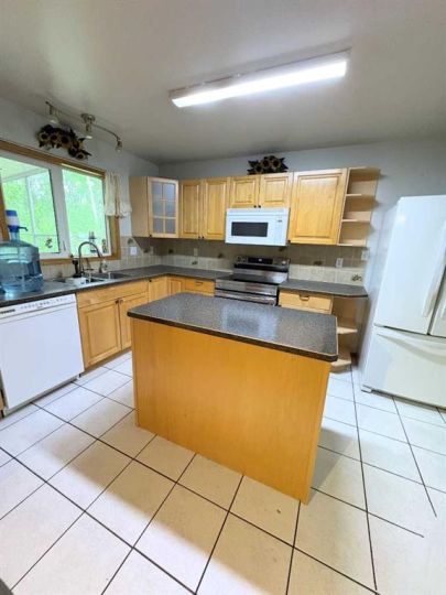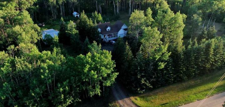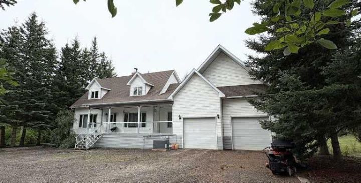 This beautiful, picture book home is situated on 7.5 treed acres in Rocky Ridge Estates, conveniently located between Grimshaw and Peace River. It boasts typical cape cod character with its sloping ceilings and dormer windows. A gorgeous three-season sunken sunroom, with hot-tub included, opens onto a lovely, sunny deck. This sunny area will no doubt be an integral part of your lifestyle. The spacious main entry blends into a flex room with fireplace. This simple symmetrical floor plan offers just-the-right-sized kitchen, leading to the main floor laundry, 2 pc bath and entry door to the garage in the back entry. The property offers exceptional privacy and tranquility, beautifully bordered by natural trees. The 28x32 heated shop includes an attached 32x32 lean-to for storage. Included is a greenhouse that has heat running through for an early start to your seedlings. Shingles were replaced in 2024. The In-floor heating system, a luxurious addition to any home, runs throughout the entire house, including the upper and lower floors, the walk-out basement, double attached garage, and the shop. In addition, there is a pellet stove in the basement. This home is about living a relaxing and healthy lifestyle, which includes a sauna, hot-tub, garden space and greenhouse. Built in 2004, this aesthetically pleasing home is ready for your enjoyment and waiting for your personal touches. This home is well built, well planned and offers everything you could desire in a prime location, and more. Your search for the perfect acreage may end here!