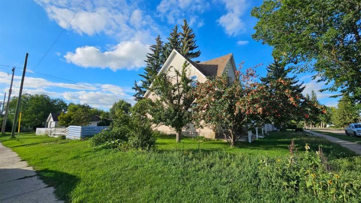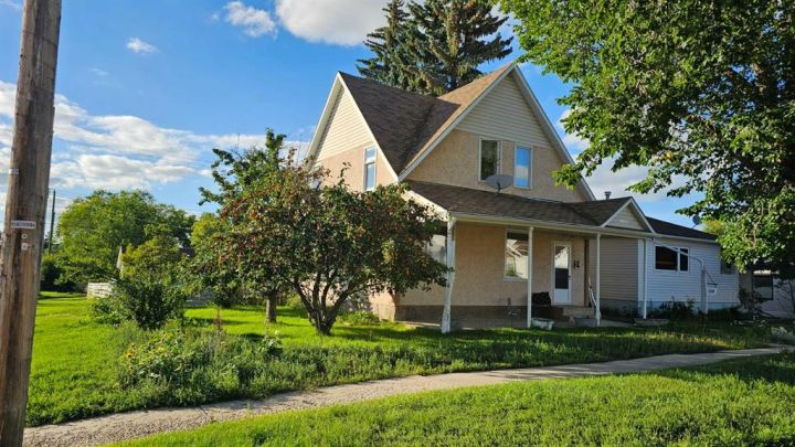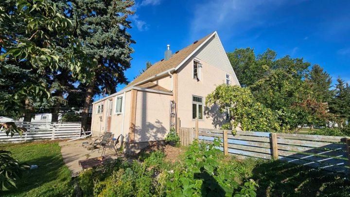 This storey and a half sits on a corner lot , with 1494 sq ft on two levels! This property has had various renovations in the past: newer stucco, two impressive windows with stained glass, flooring, fascia, soffit, eaves troughs and a huge four piece bathroom. Downstairs is the new HE furnace , new hot water tank and the sewer line has been upgraded as well. There is a small garage 14x20 to put you smart car in or just your garden items. To the east side is a covered patio ready for barbecuing or to enjoy the morning sunrise. Located ideally near uptown and all the amenities, you will not be late getting to all your activities.There is ample closet space in each room and having a main floor laundry. While this home is built in the early thirties you will just have to paint what ever colors you like. Get a head of everyone else with this revenue property of just for yourself..
