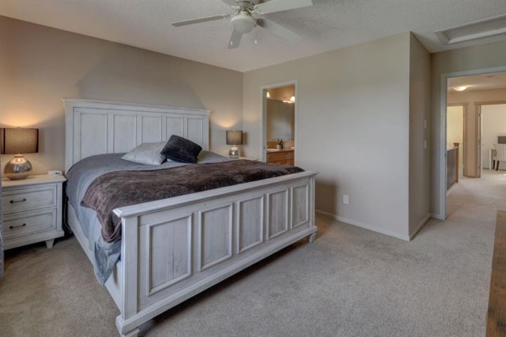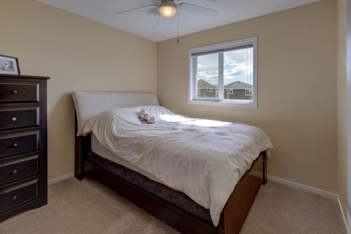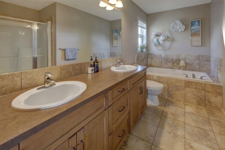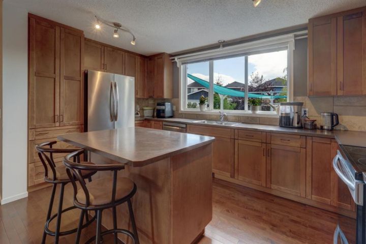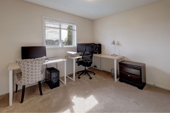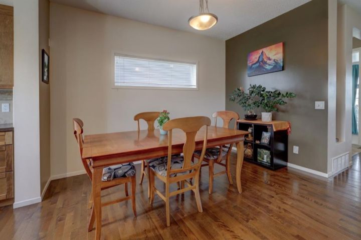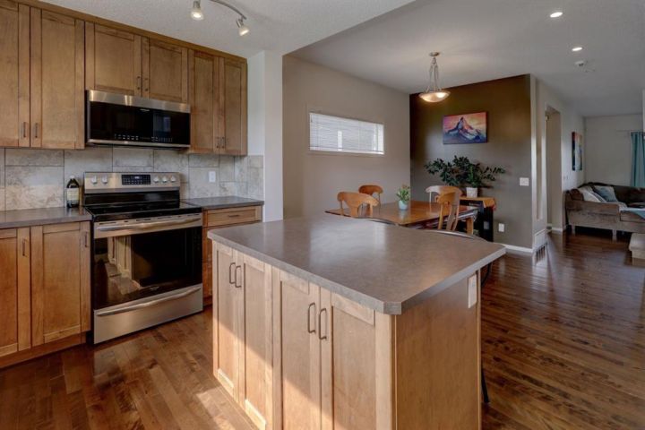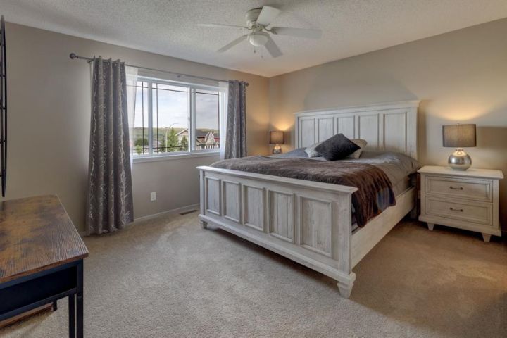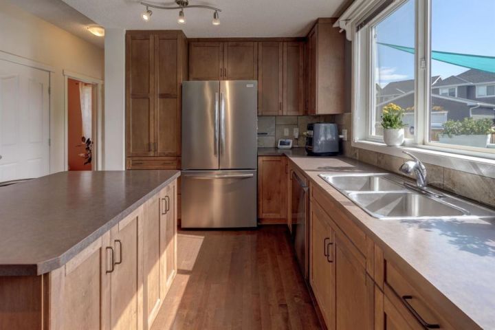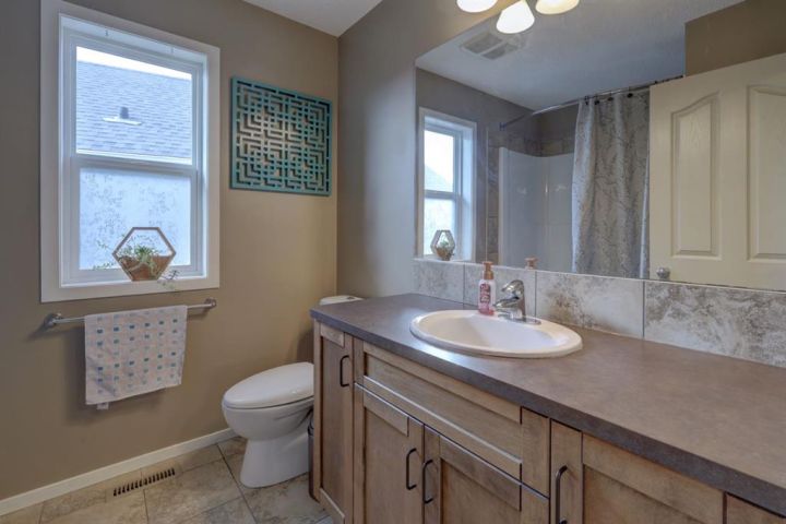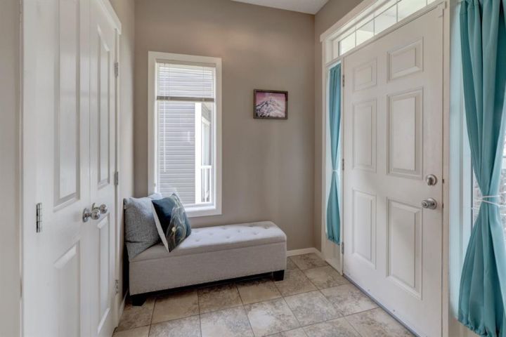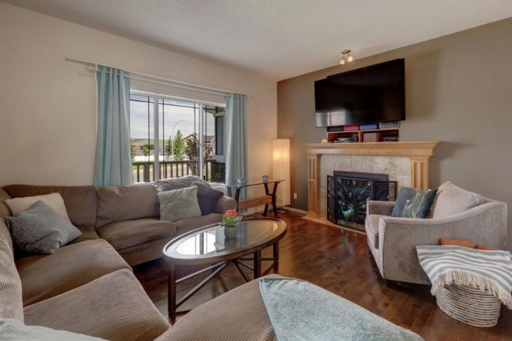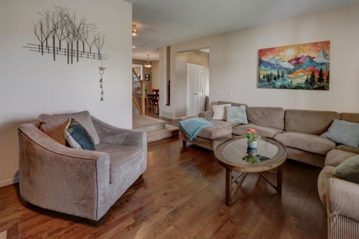 Open House Sunday, September 14 from 1-3 PM. Welcome to this beautiful property in River Heights, Cochrane! This lovely 3 bedroom, 2 ½ bath home is perfect for a family! The front of this home has curb appeal plus…the exquisite landscaping, the stone trim and a cozy verandah! The front door entrance with a window and room for seating is the beginning of the homey interior. The comfy living room has a gas fireplace and a picture window that looks out over the verandah and front yard. To the right of the entrance is the dining room and kitchen. The kitchen is perfectly laid out with lots of cabinets, an island and a large south facing window over the sink facing the immaculate backyard! From the kitchen is a back entrance to a spacious deck large enough for furniture and a barbeque, also at the back entrance there is a 2-pce bath. Across from the front entrance is the staircase going to the second floor but first there is a lovely office up 2 steps from main. Upstairs there are 3 bedrooms and a main 4-pce bath. The primary bedroom and walk-in closet are a good size. The 5-pce ensuite is large with a soaker tub and a separate shower. Upstairs, where all your laundry accumulates is where you will find the laundry room! The basement is unspoiled ready for your personal touch! An excellent feature of this home is the $20,000 solar system installed in 2024. It has already shown a savings. This home is situated on a pie shaped lot with a concrete parking pad ready for a future double garage. The rest of the south facing backyard is beautifully landscaped including mature trees ($10,000 in 2022) with plenty of room for playing or relaxing! Across the street is a playground where you can watch your children play from your front porch! K-12 schools are walking distance from the house. This property is on the south side of Cochrane so easy access to HWY #1. Only 30 minutes drive to Kananaskis. Only 30 minutes drive to University of Calgary.