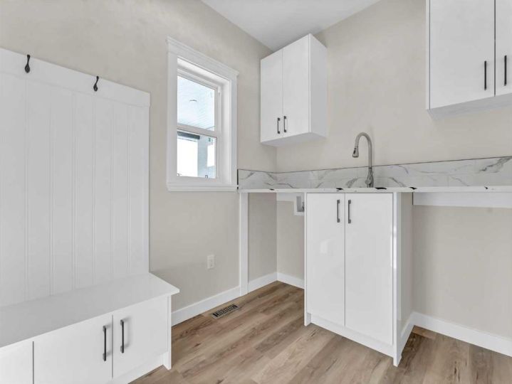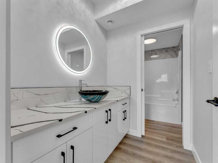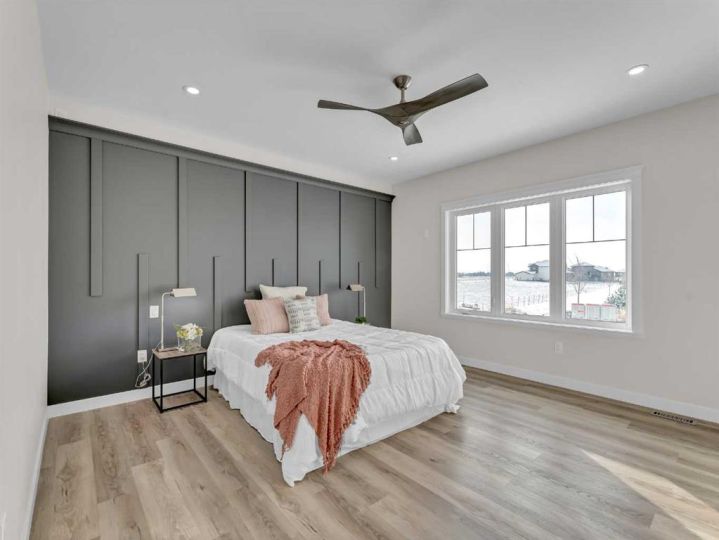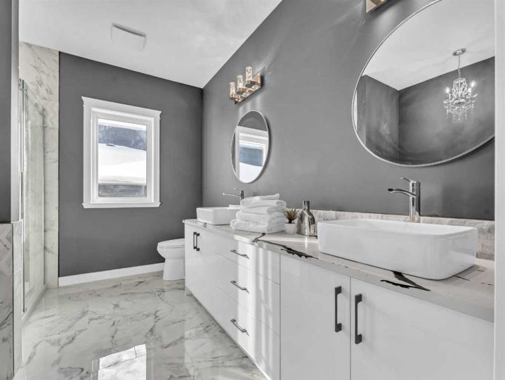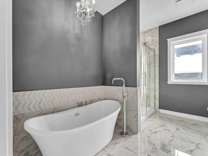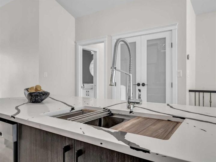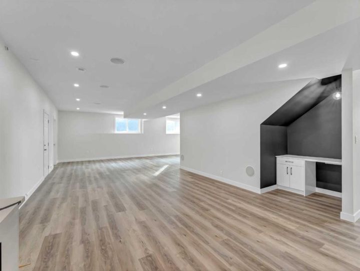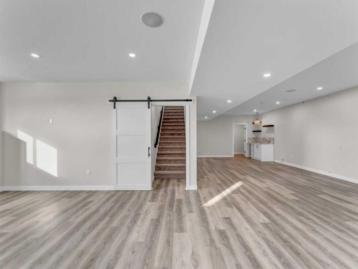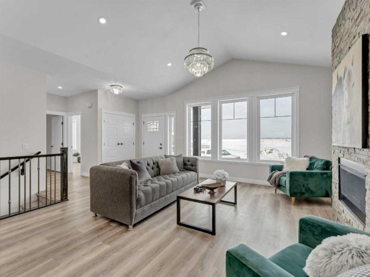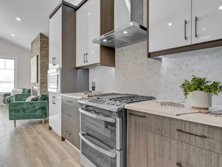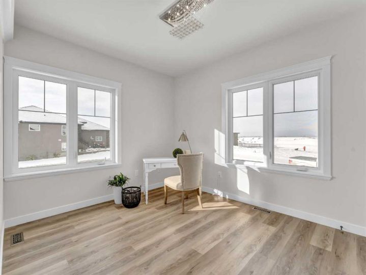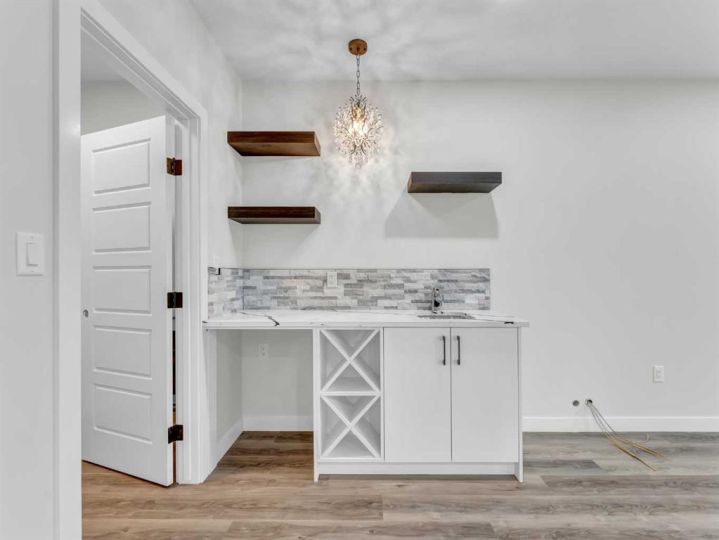 This executive fully developed bungalow in Desert Blume features 5 bedrooms, 3 full bathrooms, and a triple car heated garage on a corner lot! This beautifully finished home is waiting for its owners to move right in and start creating memories in. This home offers a functional, open concept floor plan with a large front living room w/ gas fireplace, and a beautiful kitchen with two toned cabinets, a large centre eat-at island, gas range, tile backsplash and quartz countertops. The huge dining area will host large family suppers and game nights with friends. The conveniently located laundry/mudroom has a sliding barn door and direct access to the huge, attached garage. This level offers 3 large bedrooms, including the primary which hosts a large walk-in closet and a gorgeous 5-piece ensuite with dual sinks, a stand-alone soaker tub, and separate walk-in shower. A 4-piece bathroom finishes off this level. The fully finished basement is perfect for older kids with a huge family/rec room featuring a wet bar, built-in office nook, and two huge bedrooms, one with access to the large 4-piece bathroom. A unique feature of this magnificent home is that there is also access to the attached garage from the basement. The back covered deck features a privacy wall and looks out over the good-sized back yard which is fully landscaped with underground sprinklers and a black chain link fence. This home is a must see!!!