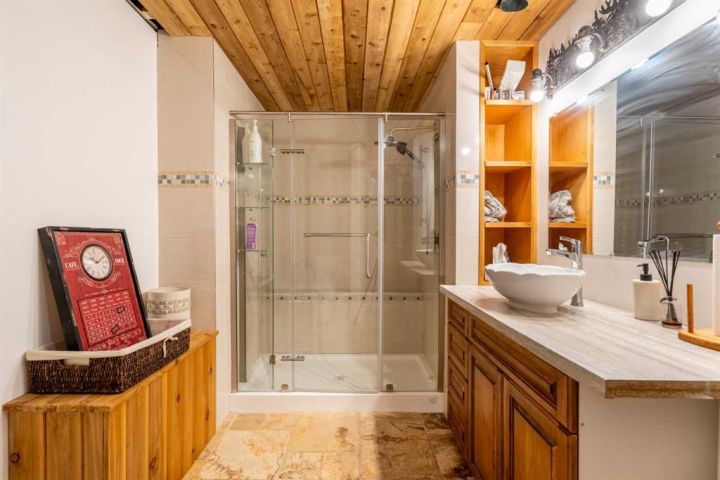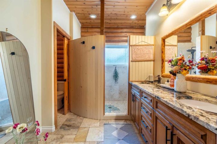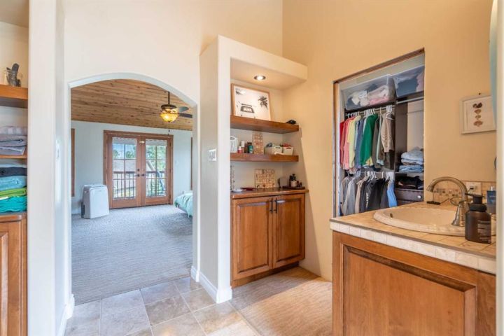 Beamed Ceilings, Built-in Features, Double Vanity, Granite Counters, High Ceilings, Kitchen Island, Natural Woodwork, Open Floorplan, Pantry, Walk-In Closet(s)