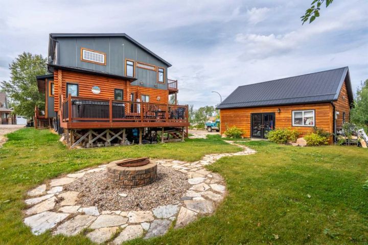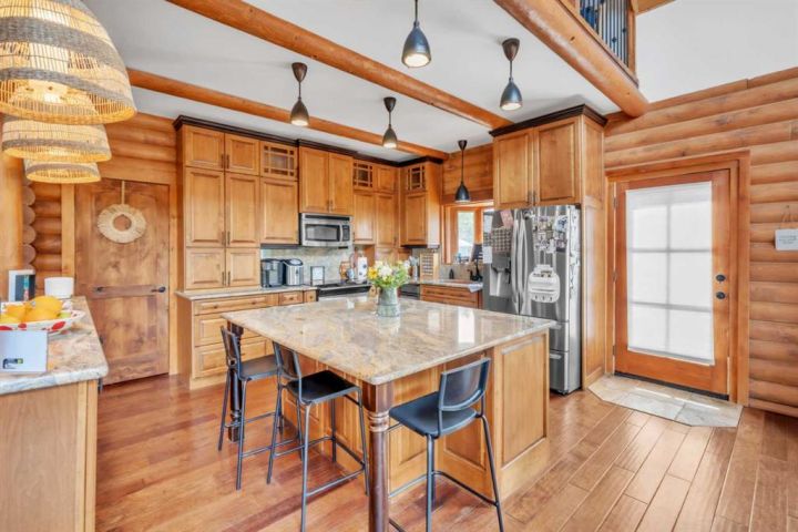 Stunning custom log home at Lac Des Ilse is just steps from the lake. With over 3000 square feet of living space on 3 levels. A true log built home from the entry you'll be awe struck with the beamed cathedral ceilings and log beauty. Large chef's kitchen with granite counters and over size island. Walk-thru pantry. This year round Lake House has 5 bedrooms, 4 bathrooms along with a 90% completed basement with flex space for gym or crafts. The magazine worthy primary bedroom has a custom tile walk in shower and his and hers vanities, a large walk in closet as well. This property includes a boat slip and a portion of the owned dock system. Picture you and your family enjoying evenings on the wrap around deck watching the northern lights over the lake. The deck has 4 natural gas outlets for BBQ and Fire Tables... so handy with the fire bans we may see. A Generac gas powered genrator is an upgrade you'll appreciate when there is a power outage. An oversize lot, beautifully landscaped includes the double garage. There is an easy to remove wall allowing a second vehicle to park. At this time, there is a bedroom for guests. The sellers built this home with quality and longevity in mind with the metal roof and triple pane windows. The expense of just the log house package wouldn't cover the price this property is listed for! Listed for well below value, this dreamy lake home can be yours!