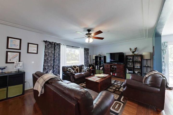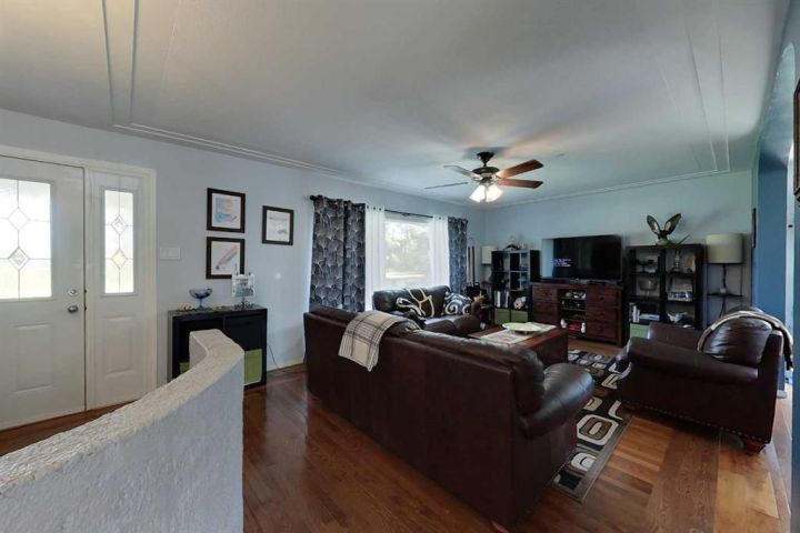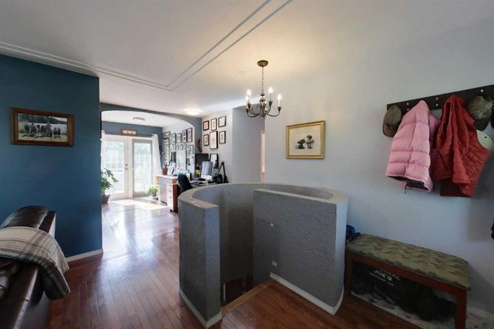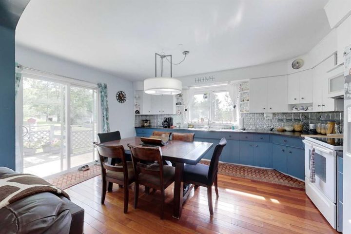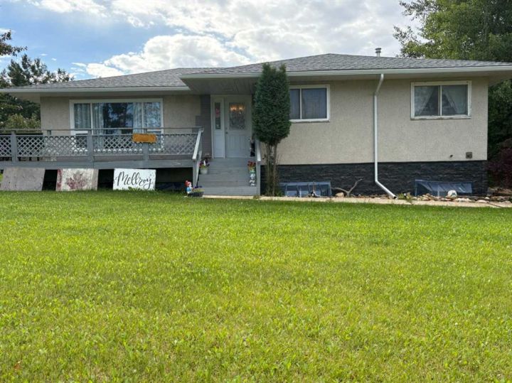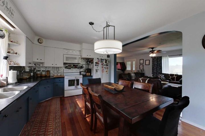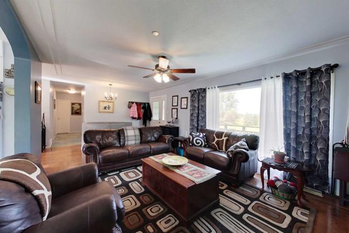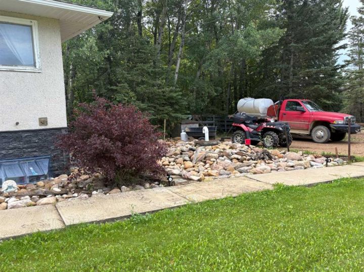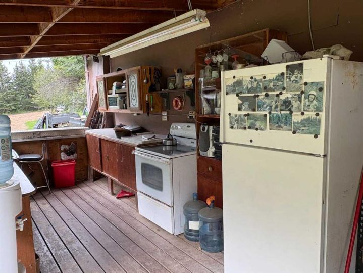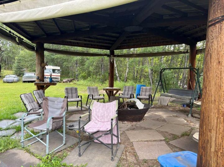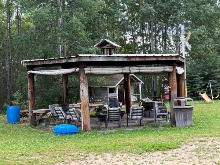 Discover this private and beautifully maintained property on 4.8 acres, thoughtfully upgraded and move-in ready. This spacious 5-bedroom, 2-bath home features numerous updates, including all new plumbing, electrical, basement windows, basement development, boiler, furnace, and hot water tank (all completed in 2007), along with new shingles in 2023. The home is built on an ICF basement with in-floor heating, while the main floor is kept cozy with a forced air furnace. A unique spiral staircase connects the main floor to the fully finished walkout basement, where garden doors lead to a newly landscaped patio and freshly graveled parking area. Inside, you’ll find a blend of hardwood and vinyl flooring throughout, rounded drywall corners, unique cutouts for the collectables. Outside, the property is equally impressive with new vinyl siding, a wooden gazebo, firepit area, plus a summer kitchen for added convenience, a converted 18x48 shop featuring radiant heat and a durable tin roof. This private acreage offers plenty of room to enjoy the outdoors while providing all the comforts of a modern home, and allows for entertaining. With its many updates and charming features, this property is a true one-of-a-kind find.