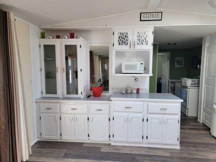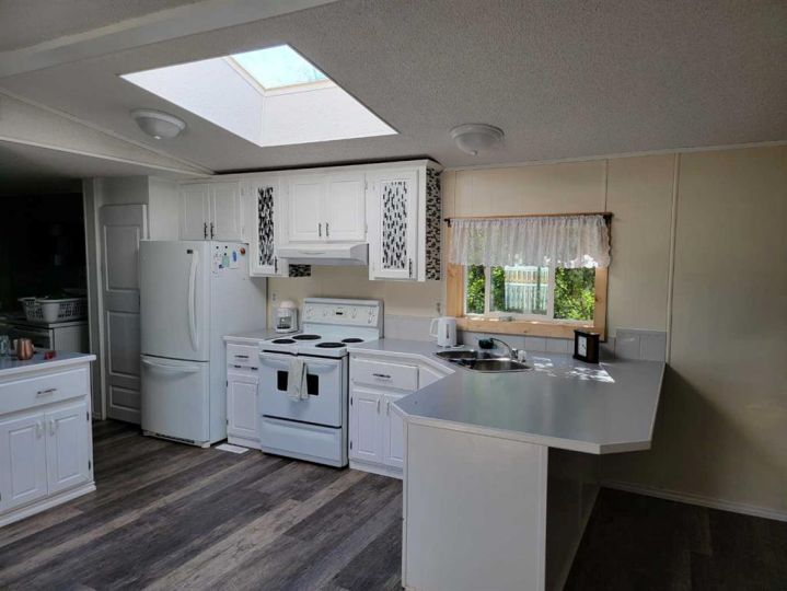 Step inside this beautifully updated 1,483 sq.?ft. mobile home and discover comfort, style, and space in perfect harmony. Everything here is new or newer — from the central air and upgraded windows to the modern light fixtures and gorgeous vinyl plank flooring throughout. Freshly painted in a welcoming palette, the open layout features 3 spacious bedrooms, 2 full bathrooms, vaulted ceilings, huge sky lite in the kitchen, this is an affordable home with room for everyone. The fully fenced yard is your private retreat, complete with a large fenced-in garden, cozy fire pit, and a huge two-story shed for all your storage or hobby needs. The extended single garage offers plenty of room for parking and includes a dedicated workshop area. All the work has been done — just unpack and enjoy. This home truly must be seen to be appreciated.