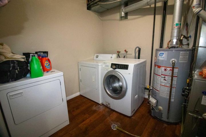 This 4-bedroom, 2-bathroom condo offers abundant space and versatility in a practical layout suited for families, roommates, or investors. With over 1,700 square feet, the unit includes a spacious living area with a gas fireplace and access to a ground-level patio that enjoys plenty of afternoon sun. A full-sized washer and dryer are conveniently located in-suite, along with additional storage. Both bathrooms are 4-piece. Two of the bedrooms feature walk-in closets. The functional floor plan and generous square footage present strong potential. Located close to schools and with easy access to Calgary for commuters, this property represents an excellent opportunity for those looking to personalize a home or expand their investment portfolio. Buyers would need to take on the remainder of the tenant's lease. Please ask the Realtor for details.