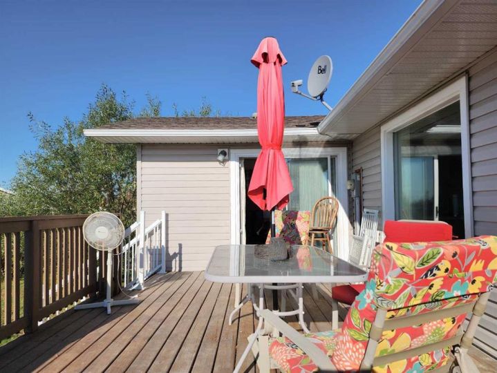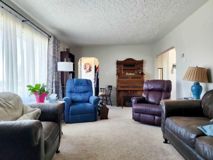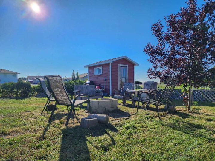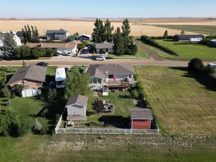 This charming 4-bedroom, 2-bathroom home, originally built in the 1960s, was relocated approximately 13 years ago and placed on a foundation, retaining some if its original 1960s charm while offering updates. With approximately 2,200 sq ft of living space, there's plenty of room for a growing family. The main floor features two bedrooms, a 4-piece bathroom, a spacious family room, a dining area with built-in cabinetry, a large, functional kitchen, and a bright sunroom , den or office with access to the deck. The basement provides excellent additional living space, including two more bedrooms, a 3-piece bathroom, a large family room, a spacious recreation area, and a laundry area—just add flooring or use as is and it’s ready to enjoy. Some windows have been updated, and upgrades include plumbing and electrical, vinyl siding, roof shingles, and a hot water tank (2024). Set in a private location backing onto green space, the home also offers central air conditioning, a fully fenced yard, two storage sheds, and a large south-facing deck—perfect for outdoor living and entertaining. Located in the village of Champion in southern Alberta, this home is part of a friendly and welcoming rural community within Vulcan County. Champion sits along Highway 23, approximately 74 km north of Lethbridge and 147 km south of Calgary, offering a peaceful lifestyle with easy access to city amenities. The village offers essential services including two schools: Champion Community School (Grades 1–9 plus a parent-run kindergarten) and Hope Christian School (Grades K–12). Residents enjoy a variety of recreational and cultural amenities such as the Champion Public Library, outdoor community pool, Pioneer Club Seniors' Drop-In Centre, baseball fields, Champion Community Park and Campground, rodeo arena, Royal Canadian Legion, and a natural ice skating arena in the winter months. Champion is a great place to call home for families, retirees, or anyone seeking a quieter, community-oriented lifestyle.