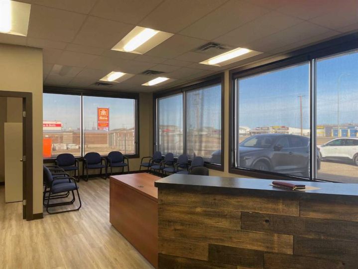 Tired of Paying Big City prices to lease space for your business? Is your business ready to expand to more space? This modern building has it ALL . A total of 17 individual l office spaces, reception area, staff lunch/coffee room, board room three handicapped accessible bathrooms and two large warehouse bays. (both warehouse bays have 14' doors) The building is surrounded by paved parking for customers and staff. Tremendous highway exposure as this property is located along the community's busiest roads. Olds is a progressive town with all the amenities of the large cities with a large trading area.