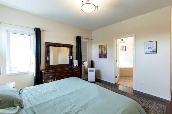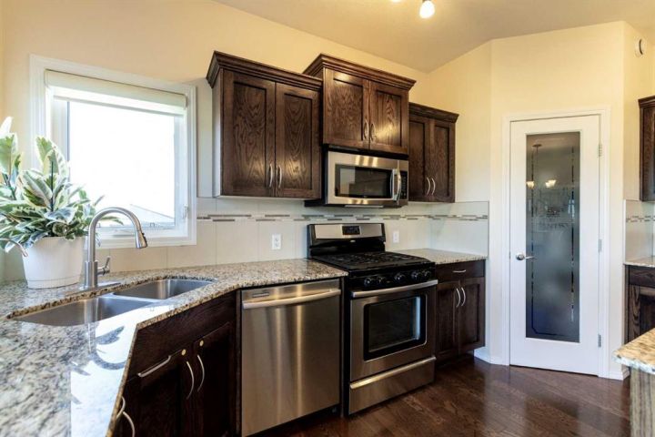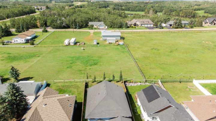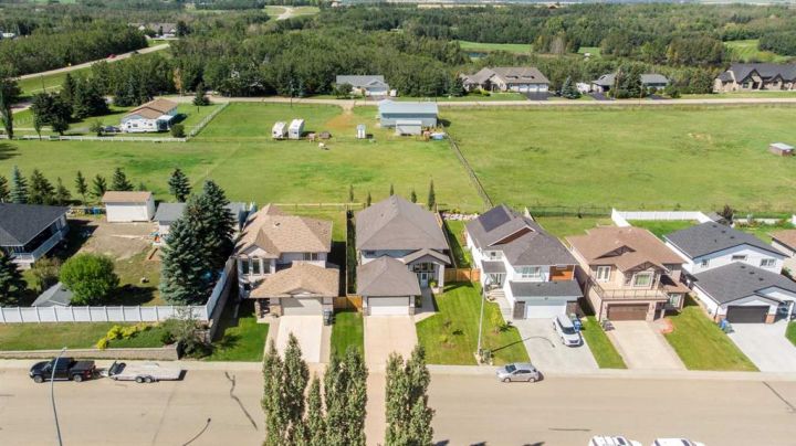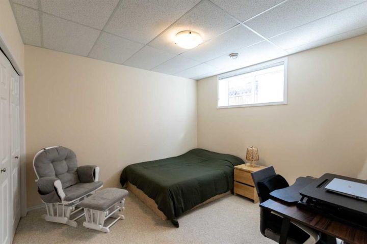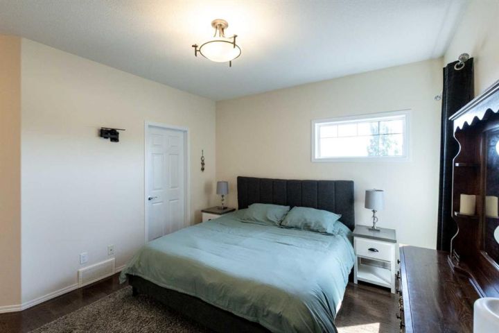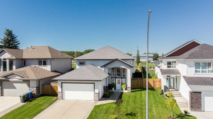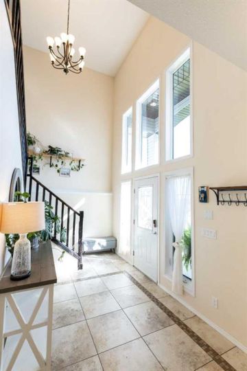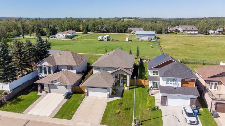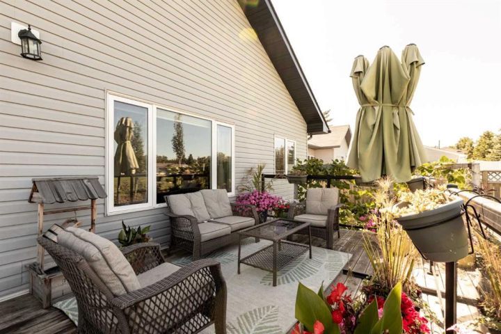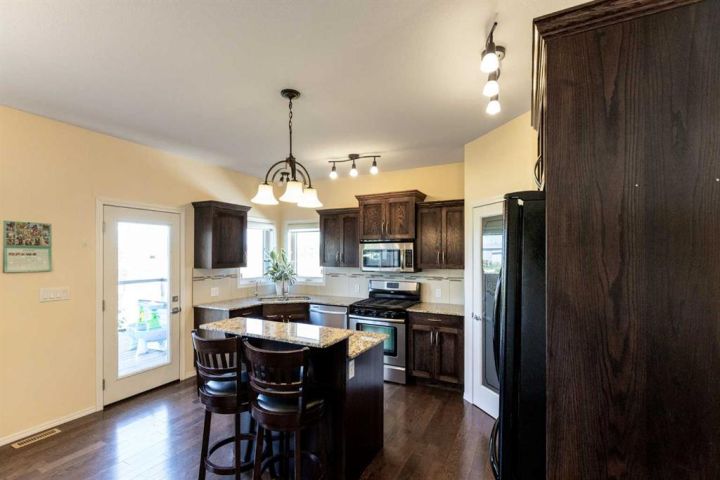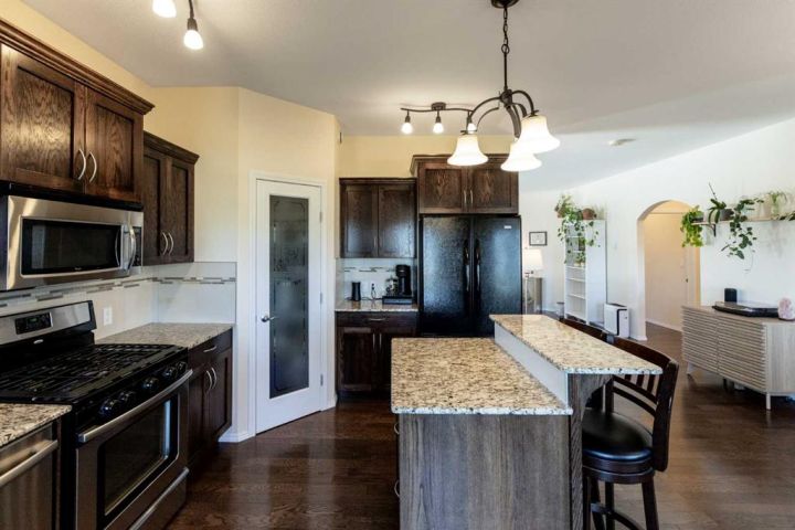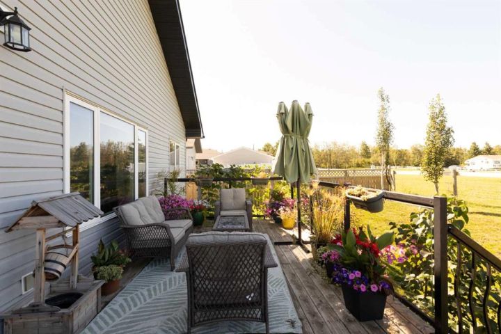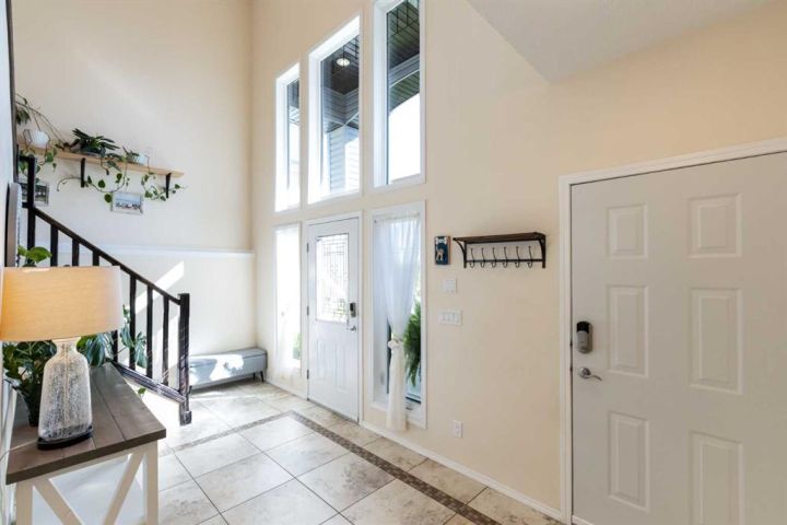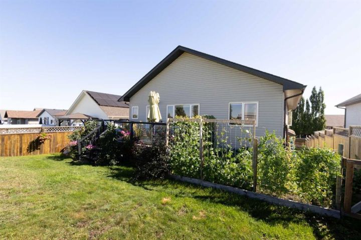 Bright Reverse Walkout Bungalow Backing Onto Acreages in Hazelwood Welcome to this beautiful 4 Bedroom + Den, 3 Bathroom walkout bungalow in the quiet Hazelwood subdivision on the edge of Innisfail. Just a short walk from Dodds Lake and with a playground just up the street, this home offers the perfect blend of town convenience and the feel of country living. Inside, you’re welcomed into a large, bright foyer with soaring ceilings—a striking introduction to the home. From here, a set of stairs leads you up to the main floor where the open-concept kitchen awaits, complete with granite countertops, abundant storage, and plenty of room to gather. The primary suite is a true retreat with a large walk-in closet and spacious 4-piece ensuite. Downstairs, the bright walkout level offers additional bedrooms, a full bath, and a flexible home gym or den—perfect for working from home or hobbies. Outdoors, off the kitchen you will find a cozy patio, great for BBQing and relaxing. For the green thumbs, you also have a garden with drip irrigation system—a dream for those who enjoy growing their own produce. The yard also features front sprinklers, and the property is equipped with hot water on demand, R/O and a water softener, and plenty of thoughtful extras. Backing onto acreages, you’ll love the peaceful setting and sense of space, while still enjoying in-town convenience. Whether you’re a family wanting room to grow or a couple seeking a bright, quiet retreat close to nature, this immaculate bungalow is ready to welcome you home.