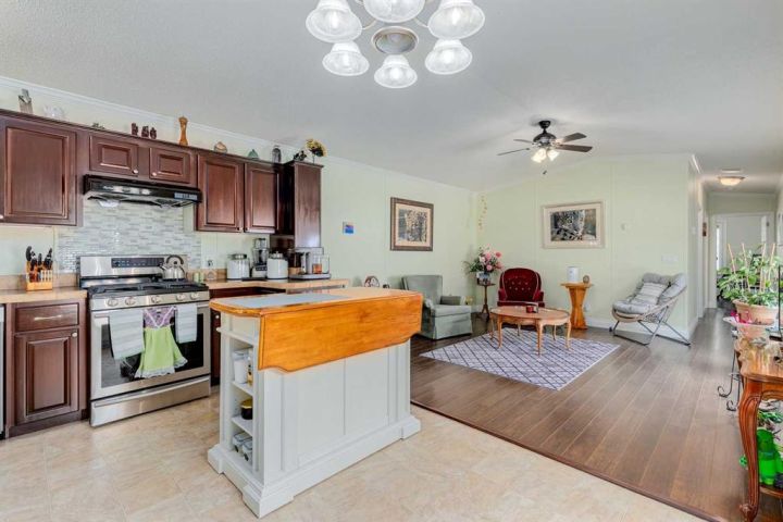 Welcome to this bright and inviting mobile home in the friendly town of Didsbury, Alberta. Thoughtfully maintained and move-in ready, this home offers 3 comfortable bedrooms, including a spacious primary suite with a relaxing 5-piece ensuite. The kitchen is both functional and stylish, featuring upgraded appliances such as a newer gas range, dishwasher, refrigerator, and convenient washer and dryer set. Whether you’re cooking a family meal or entertaining friends, this space is designed to make life easy. Step outside to enjoy the beautifully maintained deck and backyard. With a tree line just behind, the yard offers a sense of privacy and a peaceful spot to enjoy the outdoors. This home combines comfort, care, and value—all in a welcoming community. A wonderful opportunity for anyone looking for an affordable home with upgrades and outdoor space to enjoy.