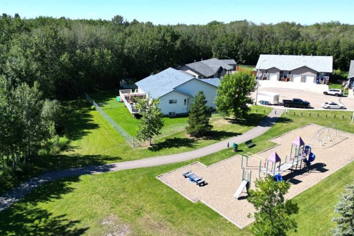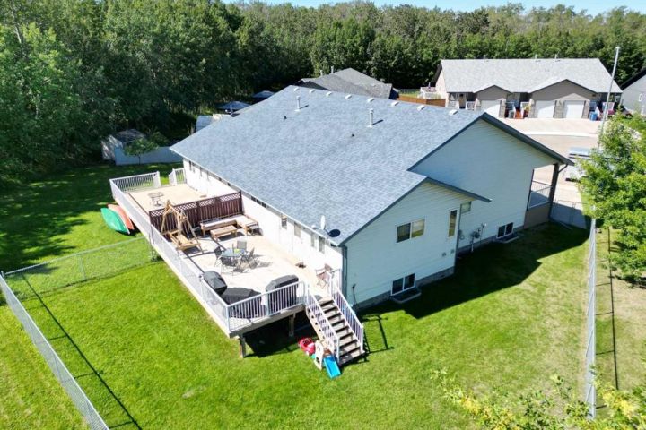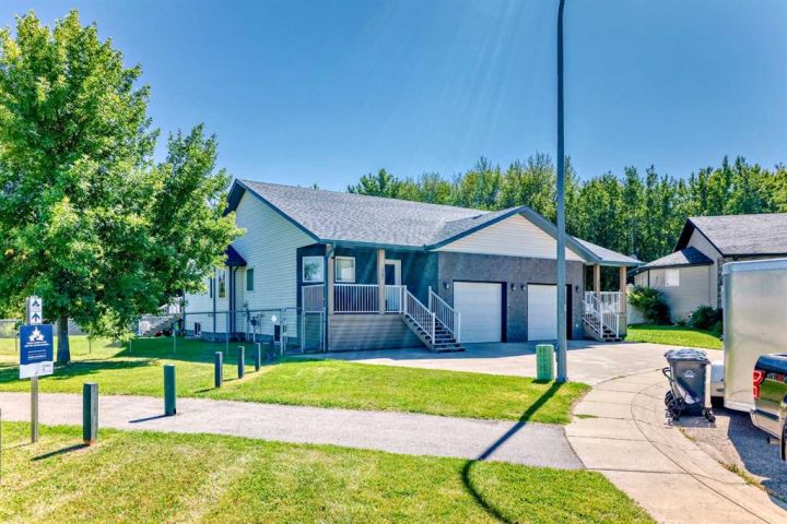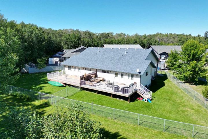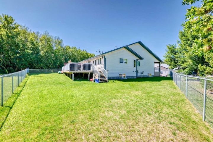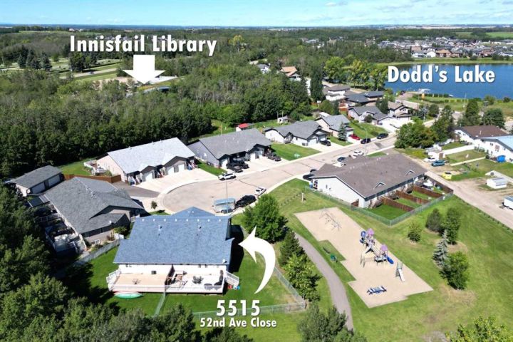 Welcome to this charming and spacious 3-bedroom, 3-bath, bungalow style half duplex located in a quiet close near Dodd's Lake. Thoughtfully designed with an open-concept layout and high ceilings, this home offers a warm and inviting atmosphere with beautiful hardwood floors throughout the main living area. The upper level features a bright and airy living space, a well-appointed kitchen with plenty of cabinetry, and a generous dining area that flows seamlessly into the living room—perfect for relaxing or entertaining. The spacious primary bedroom is conveniently located on the main floor, complete with large walk in closet and 3 pcs ensuite. Downstairs, you'll find two additional bedrooms, a full bathroom, and a cozy rec room—all fully developed and ideal for family, guests, or home office needs. Enjoy your morning coffee on the covered front deck or take in the peaceful views from your oversized, fully fenced backyard that backs onto a serene treed area frequented by local wildlife—your own private nature retreat! Additional features include an attached single garage, ample storage, and a fantastic location just steps from Dodd’s Lake and close to parks, trails, and all amenities.