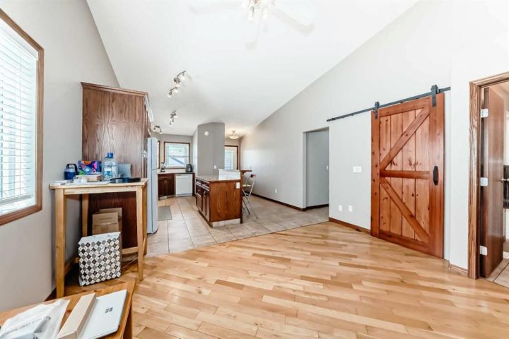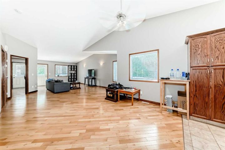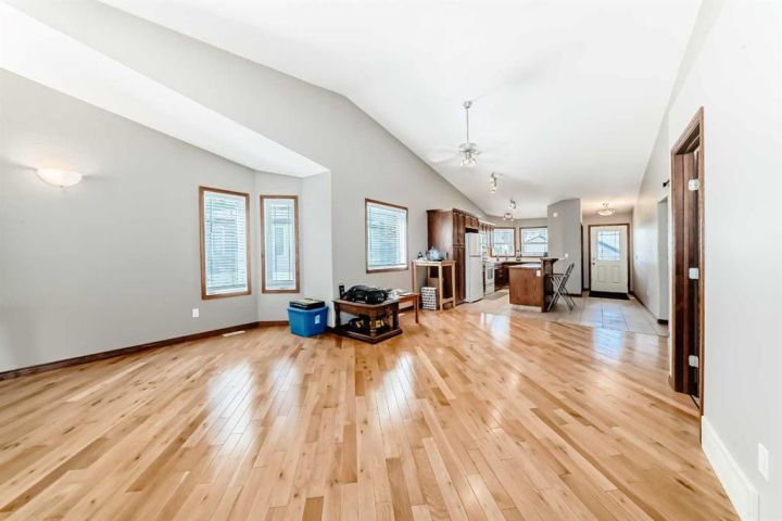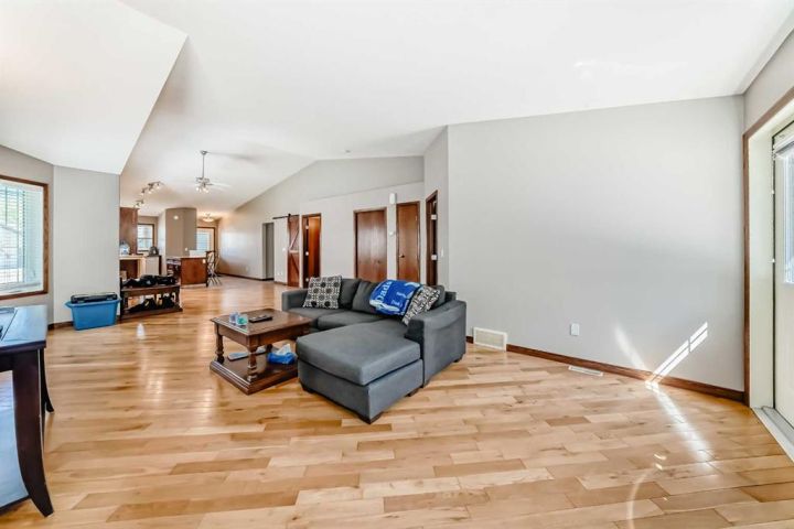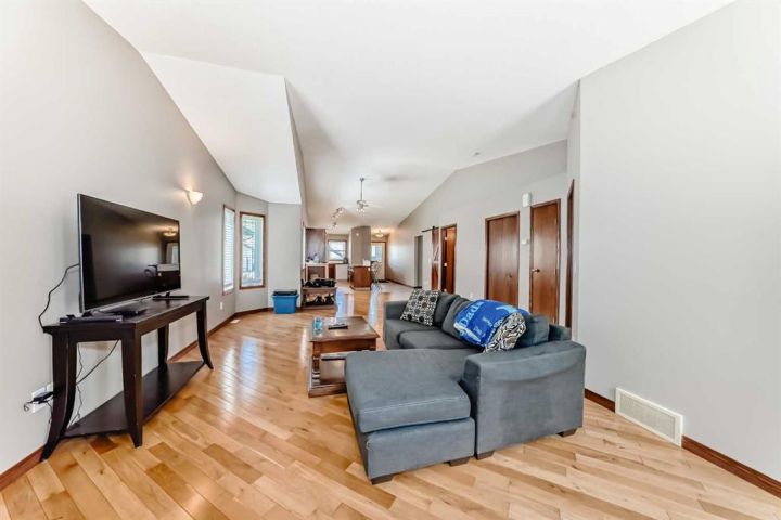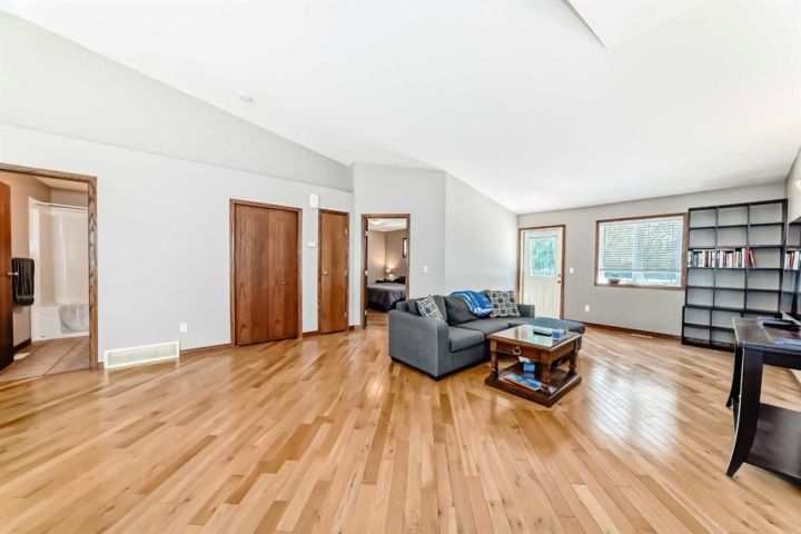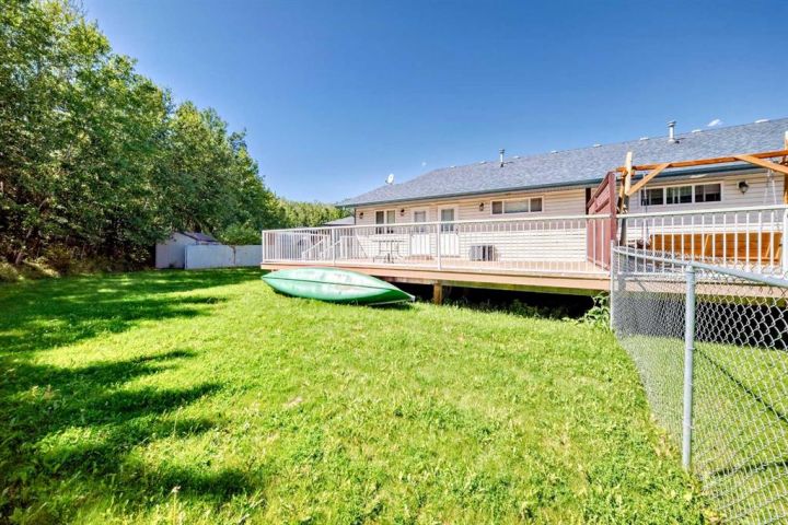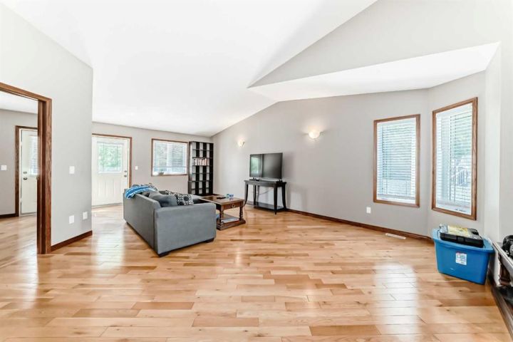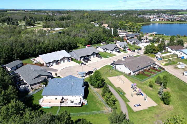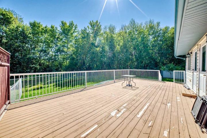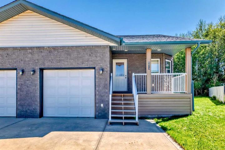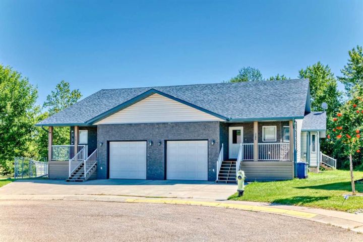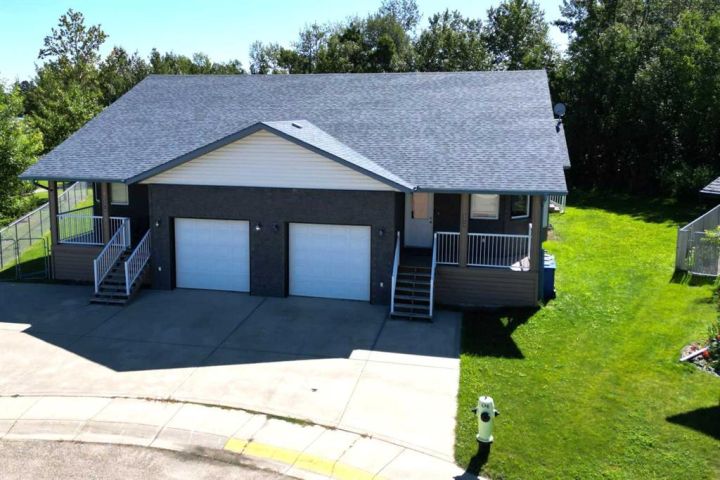 Welcome to this well-maintained 1-bedroom, 2-bathroom, bungalow style half duplex, perfectly situated on a quiet close and backing onto a beautiful treed area for added privacy and serenity. Step inside to discover a bright and spacious open-concept layout featuring rich hardwood floors, a generous living area, and a functional kitchen with plenty of cabinetry and natural light. The huge primary bedroom is a true retreat, complete with a large walk-in closet and a private 3-piece ensuite. Enjoy your morning coffee on the covered front deck, or relax on the rear deck overlooking the peaceful, tree-lined yard. The backyard offers excellent privacy, is partially fenced with a rear fence, and is perfect for outdoor enjoyment. The basement is unfinished and ready for your personal touch—create additional bedrooms, a rec room, or a home office—the possibilities are endless! Additional features include a second full bathroom on the main floor, an attached single garage, and a quiet, desirable location just minutes from nature trails and amenities. Whether you're downsizing, purchasing your first home, or investing, this property offers space, comfort, and the potential to grow.