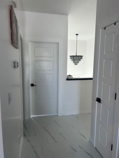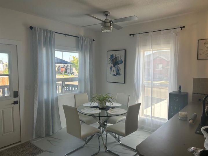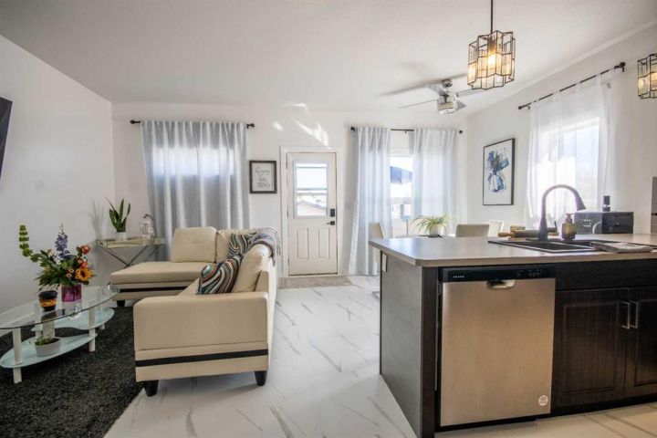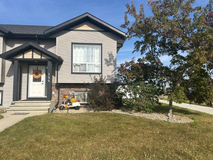 Welcome home to this beautifully updated Bi-level townhouse, perfectly located in Penhold with schools, shopping, and quick access to Red Deer or Innisfail just minutes away. Recently renovated and move in ready with new appliances and hot water tank. Step inside and enjoy a fresh, modern atmosphere with new luxury vinyl plank flooring, carpet and contemporary paint colours. The vaulted ceilings and open-concept main floor create a bright airy space where you can cook in the well-designed kitchen, visit with family at the eating bar, or step out onto the deck to relax with your morning coffee while overlooking the large backyard. The primary bedroom and 4-piece bath on the main floor provide comfort and convenience, while the finished lower level offers two additional bedrooms, a full bath, and a family room perfect for movie nights, kids' play, or hosting guests. Outside, you'll love the oversized pie-shaped lot with plenty of room for barbecues, gardening, or backyard games. The newly built oversized super single garage (insulated, drywalled, powered) gives you space to tinker on projects or store toys, while the extra RV parking makes it easy to head out on adventures. The low-maintenance vinyl fencing means more time enjoying your home and less time on upkeep. Why you'll love living here: Bright, open spaces designed for gathering and relaxing, A backyard built for entertaining and family fun. Room for hobbies, vehicles, and RVs with the oversized garage & parking. A quiet town feel with city conveniences just minutes away.