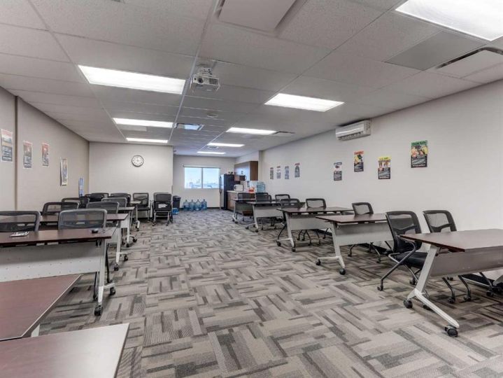 Ideal modern upstairs commercial lease space available. Offering approximately 4487 sq. ft. located in a professional well designed building in the Industrial area on north side of Lloydminster. The layout includes seven private offices, a boardroom, a training room, and washrooms, making it ideal for professional or administrative use. Tenants will benefit from a common entrance and shared reception area on the main floor, creating a professional first impression for clients. To ensure synergy with the existing main floor business, the ideal tenant’s operations should be complementary in nature. The space is fully furnished with quality office desks, chairs, and boardroom furniture, allowing for a quick and seamless move-in. Operating costs include property taxes, utilities, insurance, and repairs/maintenance, providing simplicity and value. Ample on-site parking and a high-visibility location make this an excellent opportunity for your business.