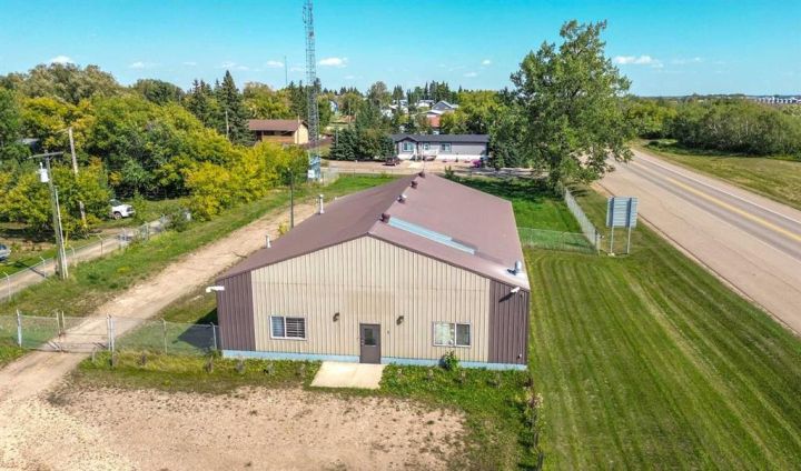Looking for the perfect location to run your business or expand your investment portfolio? This commercial property in Erskine, Alberta, offers everything you need to move in and get to work. Situated directly on busy Highway 12, the site provides excellent visibility and easy access for your customers. With commercial zoning, the building’s design allows for a wide range of business uses, making it ideal for owners or tenants in automotive and marine, trades, retail, storage, or service industries. Built in 2002, the 4000 sq ft building is constructed with durable aluminum siding and roof, featuring a large, flexible shop space with an overhead door and in floor heat. The building includes an entrance, separate office spaces, and a bathroom. The whole property is 0.77 acres, with a fully fenced storage yard and gate, providing room for storage, equipment, or vehicles. In addition, there is plenty of off-street parking in front of the building, providing convenience and accessibility for customers and staff. Erskine is just a 10 minute drive to Stettler, 12 minutes to Buffalo Lake and its many communities, and a 45 minute commute to Red Deer, making this property well-positioned to attract both local and regional business. This is an excellent opportunity to secure a high-visibility property with long-term value and diverse leasing potential in the heart of Central Alberta!