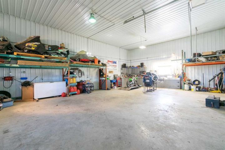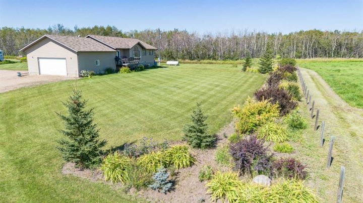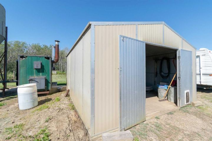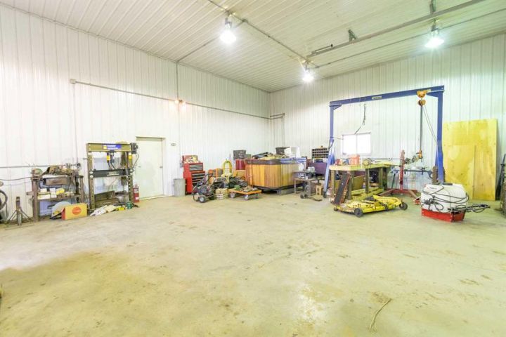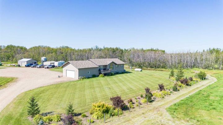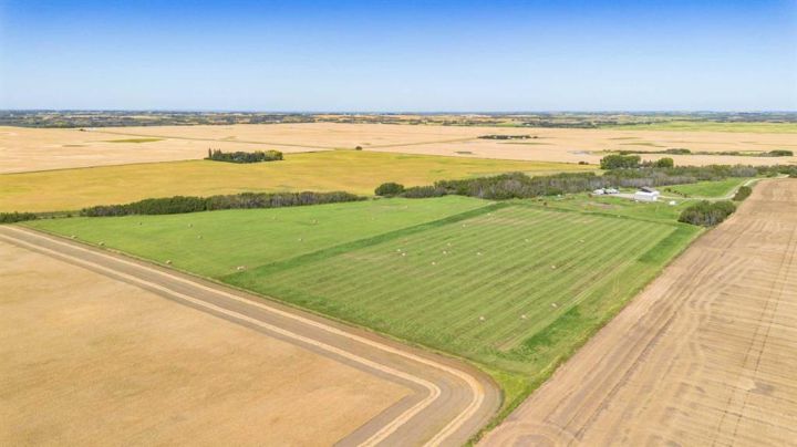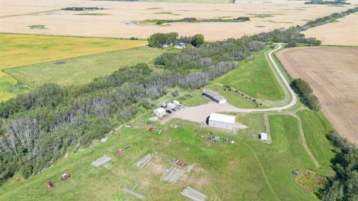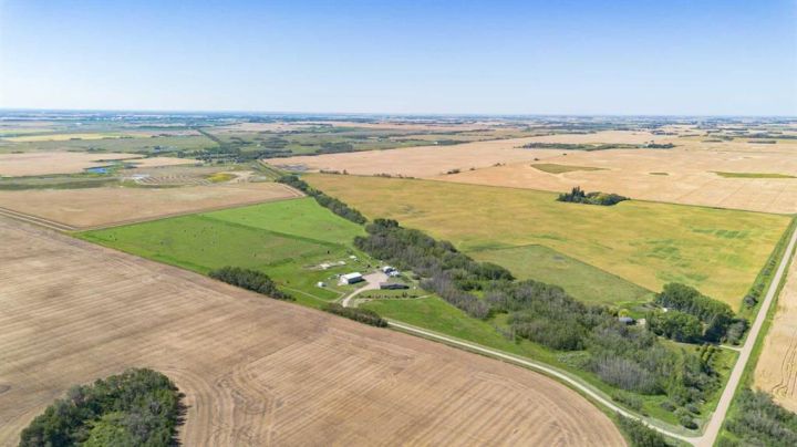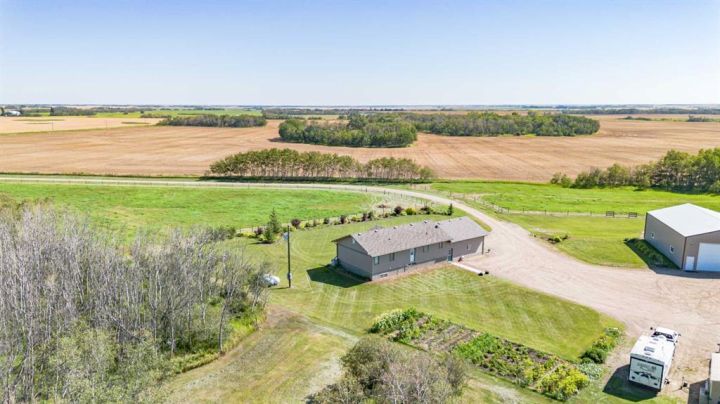 Country Living on 44.8 Acres! Here’s your chance to own a fantastic acreage that offers space, privacy, and endless potential. Sitting on 44.8 acres, this property is well set up for hobby farming, horses, cows, or most any animals with over 30± acres of hay crop (a mix of straight grass and alfalfa) and fencing already in place—just add a few wire runs and gates to finish it off. The outbuildings are a major highlight, starting with a massive 42x60 heated shop featuring in-floor heat, 220 power, 16’ ceilings, three overhead doors, and a removable center partition wall. There’s also a 24x24 cold storage building plus additional sheds for all your equipment and storage needs. Heating options are flexible with an outdoor wood-burning stove that circulates glycol to both the house and shop, plus a coal-burning stove as a backup. The system is designed so you can easily switch to a boiler if you prefer. The home sits on a solid ICF foundation with a bright, open-concept layout. Coming in through the 28x28 attached double garage, you’re greeted by a spacious entry with a handy 2-piece bath and main floor laundry. The kitchen, dining, and living areas flow seamlessly together, with the kitchen offering abundant counter space, cupboards, and a large island. The dining room can host even the biggest gatherings, while the living room features a large picture window for plenty of natural light. The main level also includes three bedrooms, including a generous master suite with 3-piece ensuite, plus a full 4-piece bathroom. The basement is a blank canvas with high ceilings and roughed-in plumbing for a bathroom (tub, vanity, and new tile are already included!). You’ll also find a wood stove and enough new laminate flooring to finish the entire basement—just bring your vision. If you’ve been looking for a property where you can enjoy country living, raise some animals, grow a garden, or simply take in the peace and privacy of the land, this acreage might be what you've been waiting for.