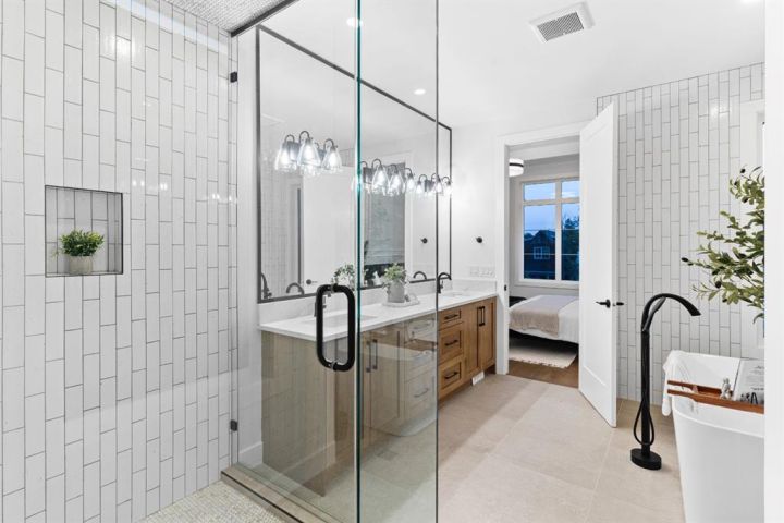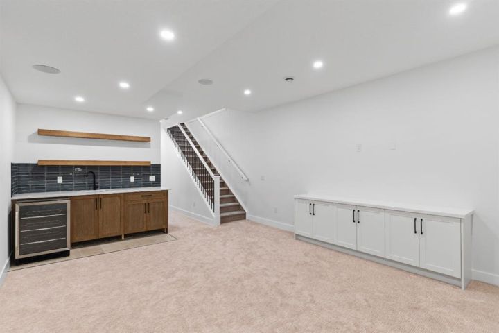 This brick-exterior home showcases meticulous craftsmanship and a layout designed for both everyday living and entertaining. The main floor features a formal dining area that features wainscoting and flows into a chef’s kitchen outfitted with Jenn-Air appliances, a large walk-in pantry, quartz counters, and full-height cabinetry with plenty of prep space. The living room is a highlight with its gas fireplace framed by a brick feature wall, and custom built-ins, while large sliding doors open to a private patio. A powder room and mudroom add convenience on this level. Upstairs, the primary suite offers custom wainscoting, a five-piece ensuite with dual sinks, a freestanding soaking tub, and a rainfall walk-in shower, along with a generous walk-in closet. Two additional bedrooms, a full bath, and a dedicated laundry room complete the second floor. The fully developed basement extends the living area with a wet bar and beverage fridge, an additional bedroom, and a full bathroom. Added touches include roughed-in in-floor heating, AC rough-in, and speaker rough-in. The home sits on a fully fenced lot with a finished double detached garage, combining style with function. Both 2610 & 2608 are available.