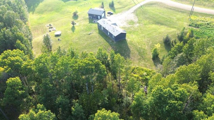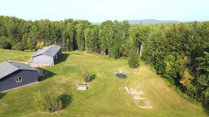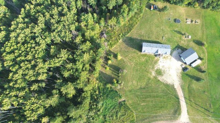 Welcome to this stunning acreage at Whispering Hills, a perfect retreat for families seeking space, tranquility, and nature. Surrounded by a beautiful array of mature trees, this property offers plenty of opportunities for exploration and outdoor activities. While the home is open to the road, the lush woodland provides privacy and a sense of adventure right in your backyard. Built in 2018, this charming 1,680 sq ft modular home features four bedrooms, ideal for family living. You'll love the open-concept kitchen that seamlessly transitions to the pantry and laundry room—perfect for busy family life. The primary suite features a luxurious 5-piece ensuite and a large walk-in closet on one side, while the three additional bedrooms and a 4-piece bath add convenience and space on the other. The spacious 32x28 garage, has a 10-foot door, two exterior outlets, and 10 interior outlets—including a 220V plug—make it perfect for hobbies and projects. The reinforced ceiling is ideal for hunters wanting to bring game home. Set on 9.78 acres of pristine land, the property boasts a serene creek flowing through the landscape with a cleared pathway leading down to a peaceful picnic spot. The well, installed in 2018, is highly productive, averaging over 35 GPM, and the property includes a modern septic treatment system. Whether you're seeking outdoor recreation, peaceful surroundings, or a warm family home, this acreage offers the perfect blend of comfort for every buyer.