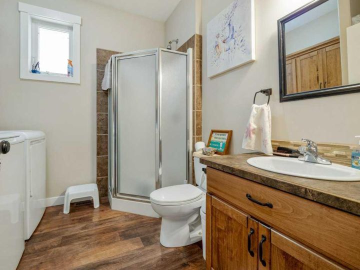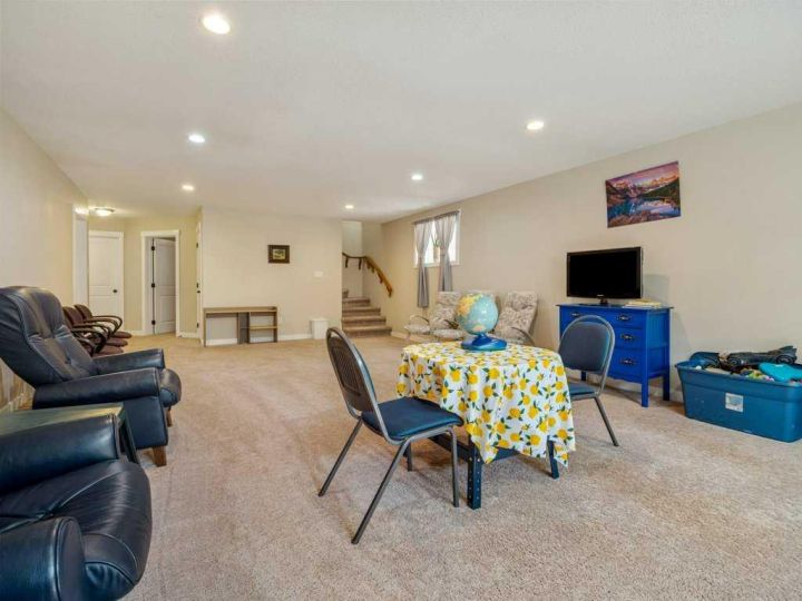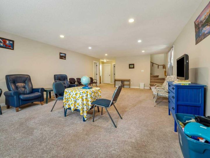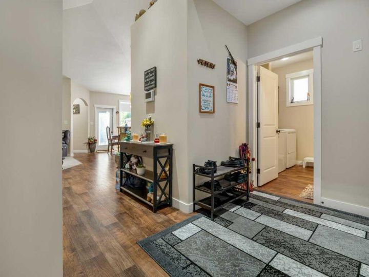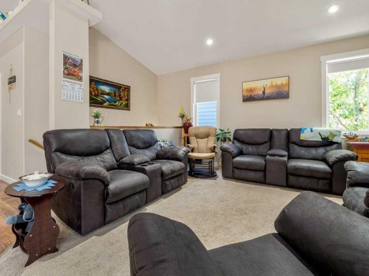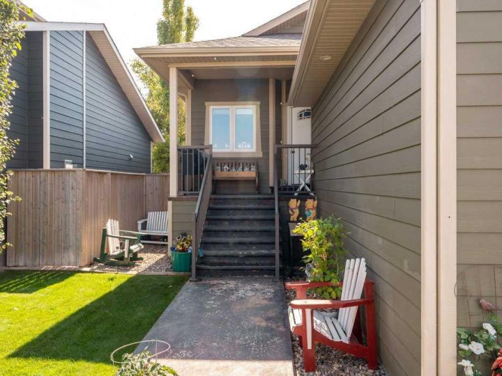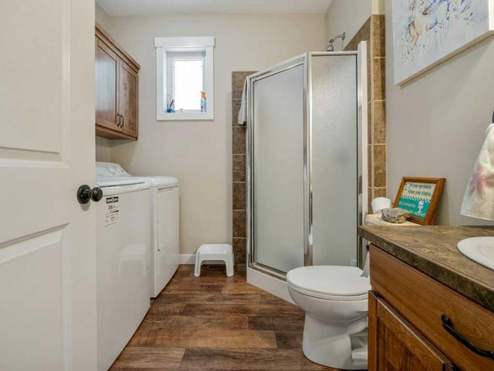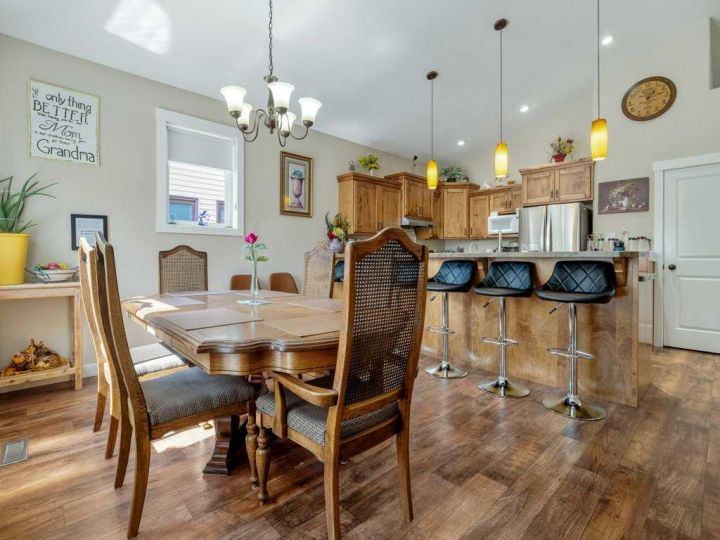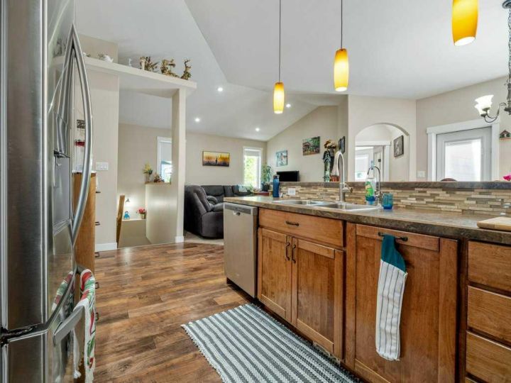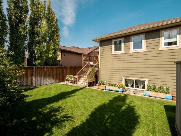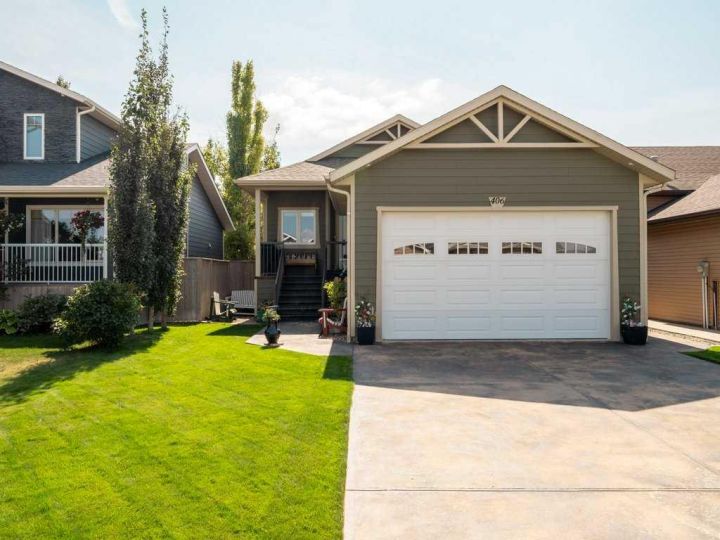 Thinking about moving to Nobleford? This beautiful 4-bedroom, 3-bathroom bungalow offers over 2,390 sq. ft. of finished living space, perfect for family living. The open-concept design showcases vaulted ceilings, plant shelves, and a custom kitchen with stainless steel appliances and an oversized walk-in pantry, while the private master suite includes a 4-piece ENSUITE. Main floor laundry adds convenience, and the fully developed basement provides two additional bedrooms, a full bathroom, and a spacious rec room. Outside, you’ll appreciate the acid-stained driveway, Hardie exterior with gable accents, and a fully fenced, landscaped yard with underground sprinklers. The attached double garage is HEATED and includes extra storage. Located in the welcoming town of Nobleford, with a K–12 school, spray park, playgrounds, walking paths, and some of the lowest property taxes in Alberta, this home is a wonderful opportunity to settle in a growing community.