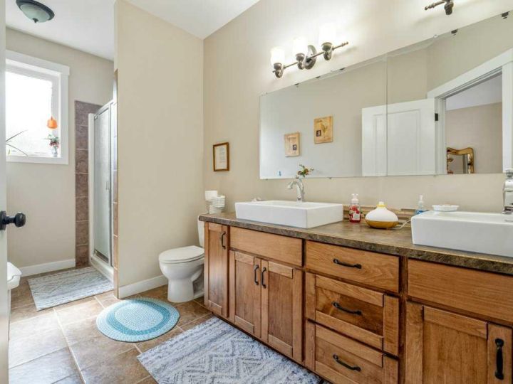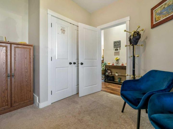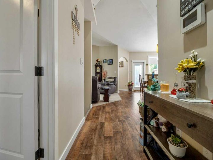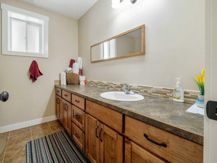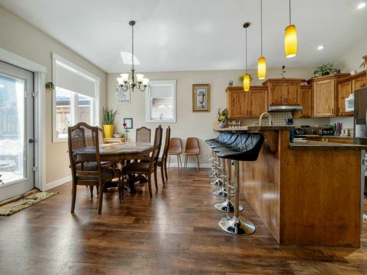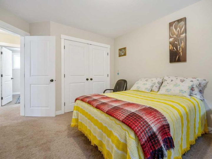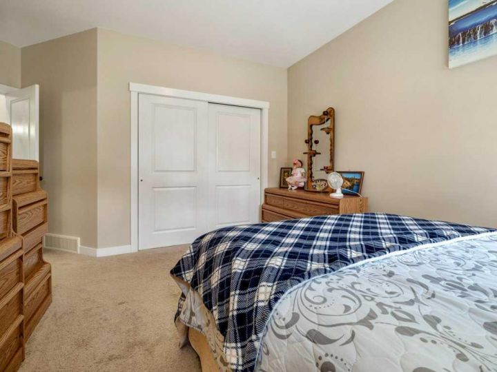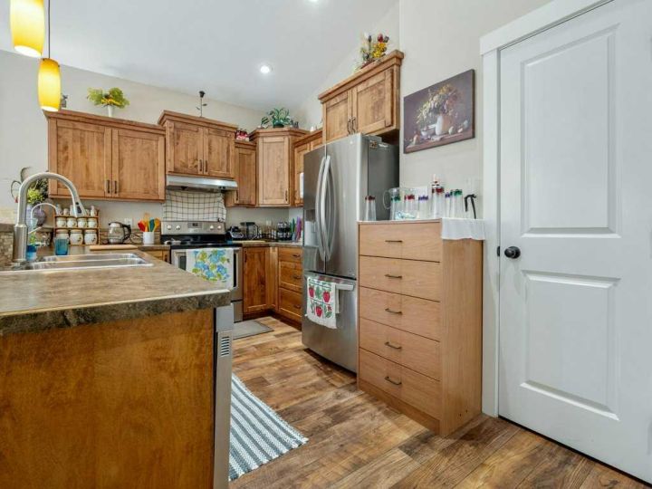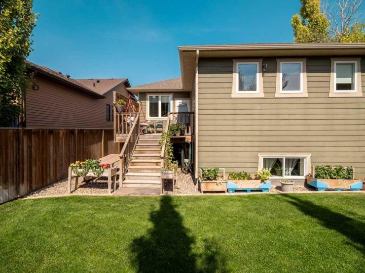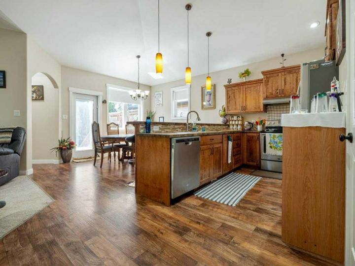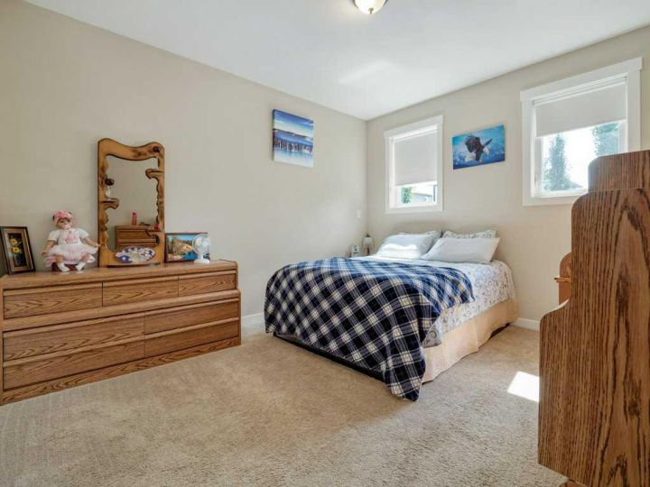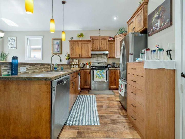 Thinking about moving to Nobleford? This beautiful 4-bedroom, 3-bathroom bungalow offers over 2,390 sq. ft. of finished living space, perfect for family living. The open-concept design showcases vaulted ceilings, plant shelves, and a custom kitchen with stainless steel appliances and an oversized walk-in pantry, while the private master suite includes a 4-piece ENSUITE. Main floor laundry adds convenience, and the fully developed basement provides two additional bedrooms, a full bathroom, and a spacious rec room. Outside, you’ll appreciate the acid-stained driveway, Hardie exterior with gable accents, and a fully fenced, landscaped yard with underground sprinklers. The attached double garage is HEATED and includes extra storage. Located in the welcoming town of Nobleford, with a K–12 school, spray park, playgrounds, walking paths, and some of the lowest property taxes in Alberta, this home is a wonderful opportunity to settle in a growing community.
