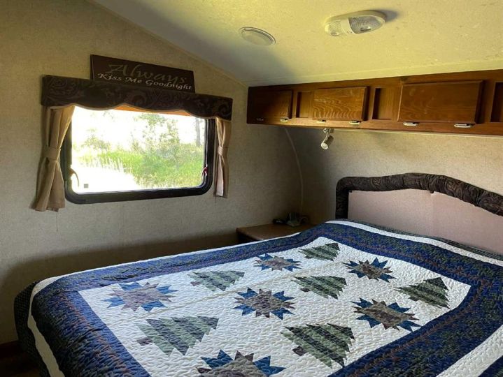 (1 only) 1997 Topaz 5th wheel with an 8 x 28 wood patio deck, (1 only) 2012 Rockwood Signature Ultralight travel trailer by Forest River, with a 12 x 32 wood patio deck . 1977 Massey Ferguson Tractor with hydraulic front bucket, PTO and brush brush cutter. One 1992 17HP Yardman riding mower, One 1999 Eze Go workhorse with dump box. Six outbuildings including: an 8 x 10 woodshed, 8 x 10 toolshed, 10 x 16 storage shed, two metal carports 10 x 20. One 14 x 21 cabin, partially completed and enclosed with a free standing wood burning stove. All equipment included is in excellent condition and is being sold on an as is, where is basis. Note: This is a retirement sale.