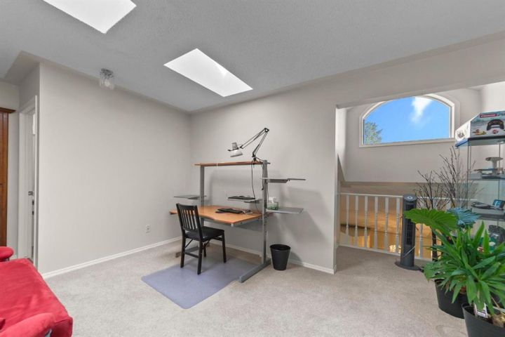 Welcome to Centre Court Condos, where comfort meets convenience in the heart of Camrose! This beautiful 2-bedroom, 2-bathroom condo offers a carefree lifestyle close to downtown, Mirror Lake walking trails, and the Senior Centre. Inside, you’ll find vaulted ceilings, an open staircase, and a charming balcony that overlooks the main level. The main floor features a generous primary suite complete with a walk-in closet and ensuite, as well as the convenience of main floor laundry. Upstairs, enjoy a bright bonus room with a skylight, a second bedroom, and another full bathroom—perfect for guests or hobbies. The lower level is a blank canvas ready for your personal touch, with plenty of room for storage. A single attached garage adds to the appeal of this low-maintenance, well-located home.