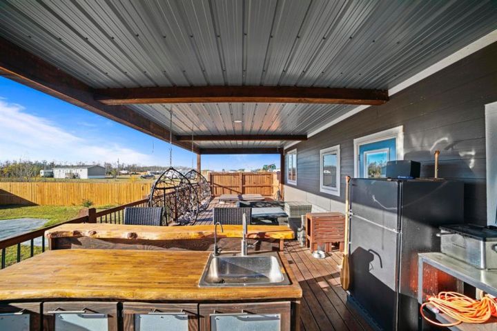 This beautiful 4-season cabin in Pelican Point combines rustic charm with modern comfort and is a perfect year-round getaway! With 2-bedrooms, 2-bathrooms, it is a relaxing retreat that captures the essence of lakeside living. It boasts an inviting open-style design, highlighted by wood-beamed ceilings that exude warmth and character. A cozy wood-burning fireplace takes center stage, perfect for those cool evenings, while the farm sink and wood features throughout provide a touch of rustic elegance. You will love the massive back covered deck that has an outdoor kitchen and hot tub overlooking a huge lot and park, making it an ideal lakeside escape for those seeking solace in the great outdoors. Don't miss the chance to own your piece of paradise in Pelican Point!