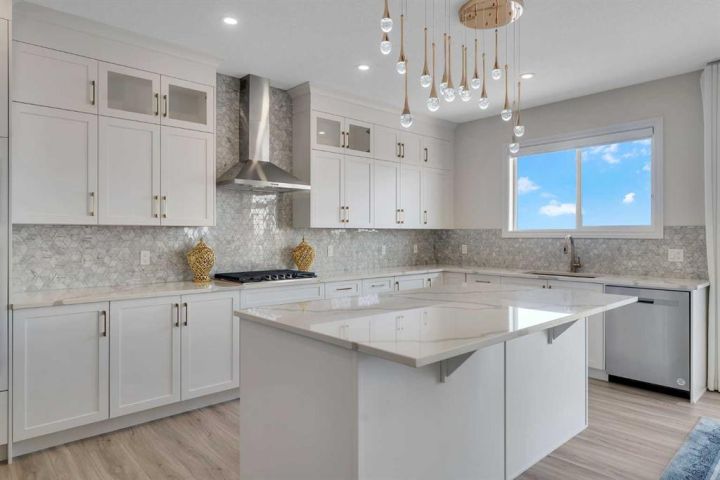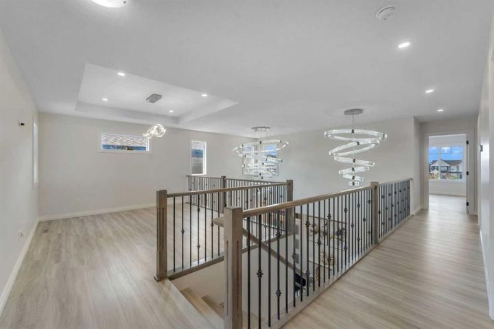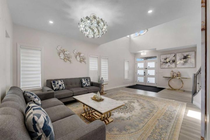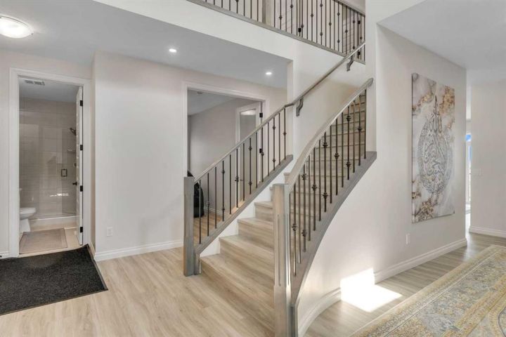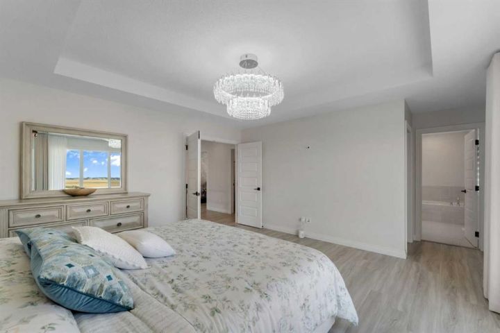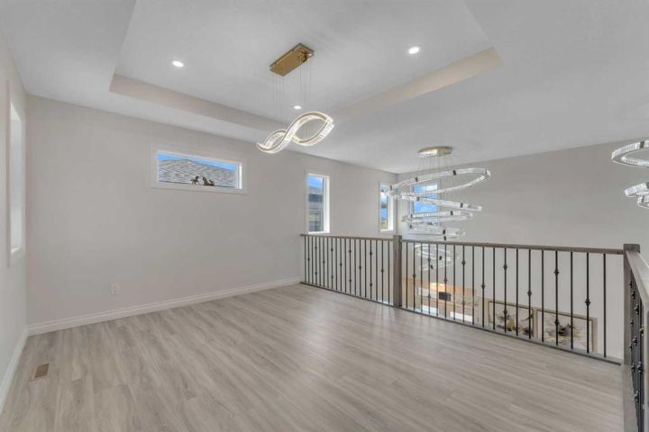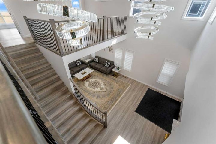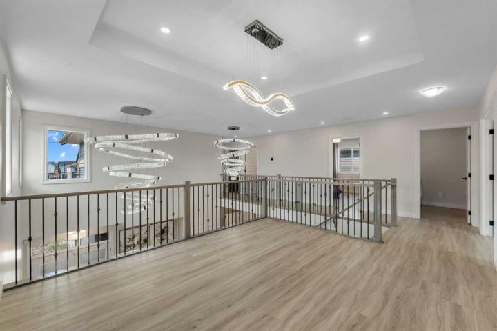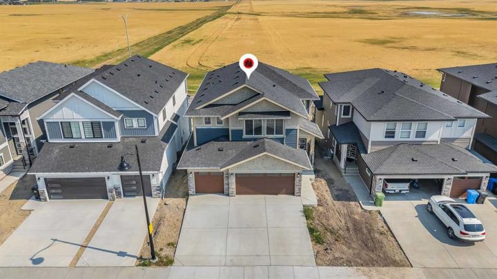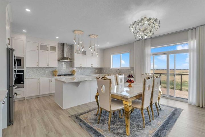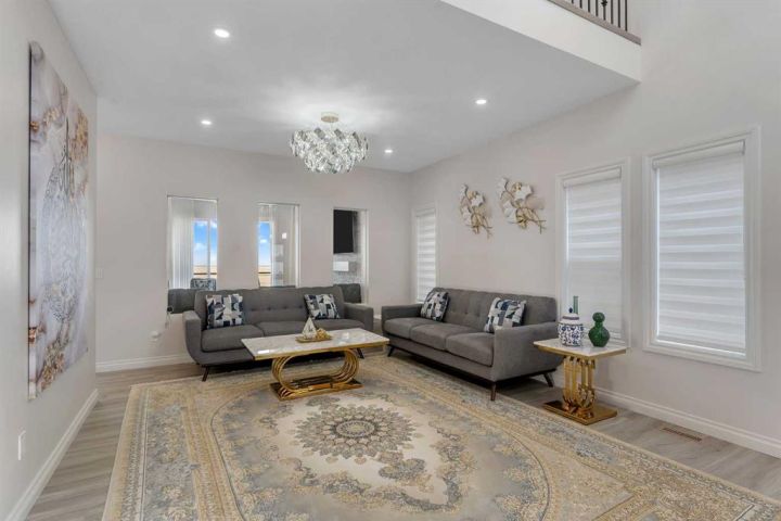 Welcome to this stunning and highly upgraded residence in the desirable community of Homestead. Perfectly situated with a playground right across the street and no neighbors behind, this home backs onto serene green space, offering both privacy and breathtaking views. Step inside and be greeted by a grand open-to-below foyer with dazzling chandeliers that set the tone for the elegance throughout. The main floor boasts a bedroom with full bath, making it ideal for multi-generational living. Enjoy not one but two spacious living rooms, a cozy fireplace feature wall, and a chef’s dream kitchen complete with a spice kitchen for all your culinary adventures. Upstairs, you’ll find a beautiful bonus room and four large bedrooms, including two luxurious master suites with spa-inspired ensuites. Every corner of this home has been thoughtfully designed with upgraded finishes, elegant lighting, and modern fixtures. The backyard features a huge deck, perfect for entertaining and enjoying the peaceful green space. With a triple car garage, there’s plenty of room for your vehicles and storage needs. This home truly combines luxury, comfort, and functionality—a rare find in one of Calgary’s fastest-growing communities.