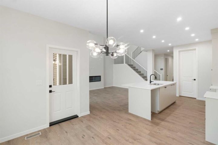 From the moment you step inside this brand-new Cedarglen Homes Nanton model in Seton, you’ll feel the rare blend of sophistication and comfort that makes a house instantly feel like home. Designed with modern families in mind, this two-storey residence combines architectural drama with functional spaces—perfect for both lively entertaining and quiet moments of retreat. The foyer opens into a flexible front room that adapts seamlessly to your lifestyle—an inspiring home office, kid’s play room, or a tucked-away reading nook. At the heart of the main floor, the kitchen commands attention with its soft greige cabinetry, quartz countertops with subtle marble veining, and a handcrafted-look backsplash that adds texture and charm. You’ll receive an allowance of $6,900 to select your desired appliances at the builder’s supplier. A large central island invites casual breakfasts, after-school homework sessions, or late-night conversations over your favourite beverage, while the adjoining nook flows effortlessly onto the deck for al fresco dining. Anchoring the main floor, the great room soars with an open-to-above ceiling and a full-height fireplace—a striking focal point that bathes the room in natural light and sets the stage for gatherings big and small. Thoughtful touches like a mudroom off the garage & a 2 pc powder room make daily living beautifully practical. Upstairs, the private primary suite becomes your sanctuary, complete with a spa-inspired ensuite featuring dual sinks, a walk-in shower, and a spacious walk-in closet. Two additional bedrooms and a sleek upper-floor laundry room simplify family routines, while the bonus room overlooking the great room provides a second living space for movie nights or playtime. The open-to-below design keeps the entire home feeling connected, airy, and architecturally refined. Every finish has been carefully curated: warm wood-toned luxury vinyl plank on the main floor, soft speckled carpet underfoot upstairs, creamy quartz and tile in the baths, and bold matte black fixtures throughout—a timeless palette that feels both modern and inviting. Beyond the home itself, Seton is Calgary’s urban hub in the southeast, offering everything at your doorstep. Walk to the state-of-the-art South Health Campus, explore an endless array of restaurants and shops, or enjoy family time at the world-class YMCA. With schools, parks, pathways, and a vibrant community feel, Seton is designed for connection and convenience. This is more than a house—it’s a home where design meets lifestyle, in a neighborhood that has it all. Don’t miss your chance to make it yours. Schedule your private showing today. *Some photos are virtually staged*