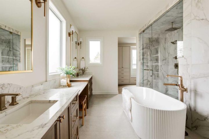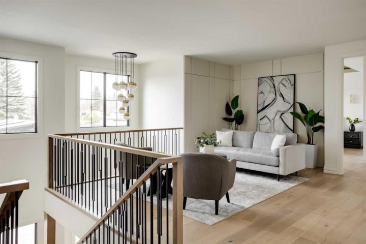 Cedar Rock Homes presents a brand new luxury family residence tucked away on a quiet cul-de-sac in the highly sought-after community of Lakeview. This exceptional property offers a prime location, rated 10/10, with exquisite features and finishings, and will be ready for occupancy in early 2026. The home spans 3,426 sq. ft. above grade with a total of 4,939 sq. ft. of developed living space, featuring 4 bedrooms upstairs, 1 bedroom down, and 5 bathrooms in total. The sunny west-facing backyard includes a rear-attached triple garage connected to the home through a breezeway and spacious mudroom. Interior designed by Lori Sellmer, the interior boasts custom site-built cabinetry with maple dovetail drawers throughout. The main floor showcases a dining/flex room, private office, large pantry, dining area, living room with a gas fireplace, and sliding doors that open to a central courtyard complete with an exterior gas fireplace. The chef’s kitchen is equipped with a premium Miele appliance package, butler’s pantry with tall freezer, oversized island, and custom hood fan. Upstairs, the primary retreat impresses with a vaulted barrel ceiling accented by a white oak backwall panel, an oversized curbless steam shower, a freestanding tub, and heated floor. The lower level, with 10 ft ceilings, offers a spacious rec room with wet bar, gym, fifth bedroom, storage, and full bathroom. A detailed list of features, & specifications.