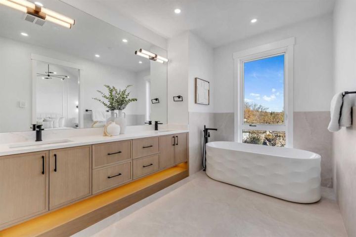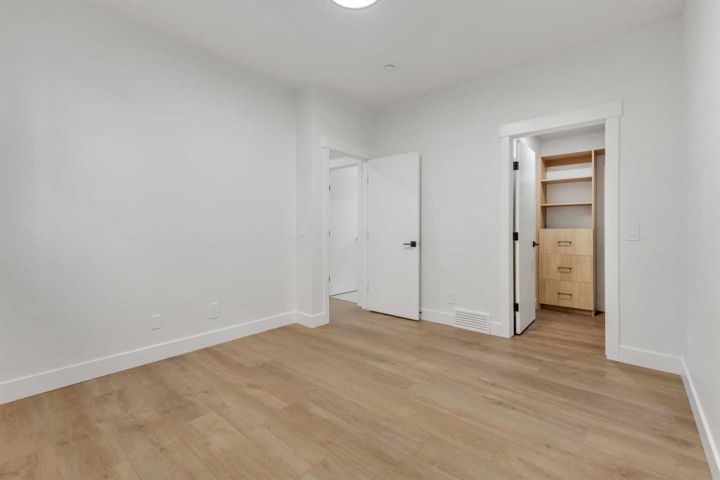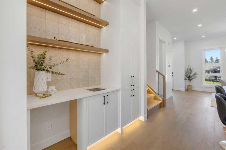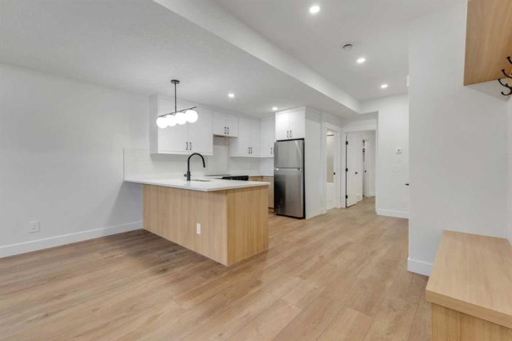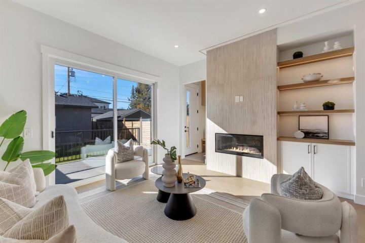 LOCATION LOCATION! Built on a quiet street only steps to West Confederation Park, this BRAND-NEW semi-detached infill in Banff Trail offers a superb floorplan with a LEGAL BASEMENT SUITE (Approved with the permit & subject to final inspection by the city). Banff Trail is well-situated in inner-city NW, with lots of outdoor recreation, schools, & shopping nearby. Confederation Park & the Charleswood Tennis Courts & Splash Park are a quick walk down the street, the City of Calgary toboggan hill is only 6-mins away, and the Confederation Park Golf Course is only 10-min down the road; a quick 9 holes after dinner can be a weeknight reality! Banff Trail School is mins away & Calgary Montessori School, Branton School, Rosemont School, and St Francis High School are all close by, with SAIT & UofC a short bike ride away. Dining options, shopping, amenities, and more are all at your fingertips, with Banff Trail, North Hill Centre, and all the businesses along Crowchild easily accessible from this inner-city location. With an amazing layout & premium finishes, you’ll discover a beautiful blend of both a stylish & functional lifestyle. This home features several upgrades, including engineered hardwood & 10-ft ceilings on the main level, soaring ceilings on the upper floor & a fully-developed basement w/ a LEGAL SUITE. The main floor boasts large primary living spaces, including a bright front dining/flex room, a large central kitchen with an oversized island w/ bar seating, ceiling-height custom cabinetry, and built-in pantry & coffee station. The large rear living room is finished w/ an inset gas fireplace w/ modern full-height surround, built-in millwork, and large windows overlooking the SOUTH back patio – perfect for family gatherings! A rear mudroom hosts a bench with hooks, with direct access to the double detached garage out back and an elegant, private powder room. Upstairs, you'll find the two secondary bedrooms w/ built-in closets, a spacious laundry room and a main 4-pc bath w/ modern vanity and a tub/shower combo w/ full-height tile surround. The primary suite features a soaring vaulted ceiling, multiple tall windows for tons of natural light, and a large walk-in closet w/ built-in storage. The 5-pc ensuite shows off with heated tile floors, glass shower w/ full-height tile, a free-standing tub, a modern vanity, dual under-mount sinks, and a separate water closet. The fully-developed LEGAL BASEMENT SUITE (approved in the development permit by the city) enjoys private access through a secure side entrance, two generous-sized bedrooms w/ built-in closets, a spacious and contemporary 4-pc bath w/ modern tile & vanity, large windows, space for a washer & dryer, plus a large living room area! The kitchen is thoughtfully arranged with quartz countertops & full-height cabinetry. Take a drive by this property and see how this house & fantastic location will suit your family perfectly! * Photos from Show Suite finishes may vary slightly*