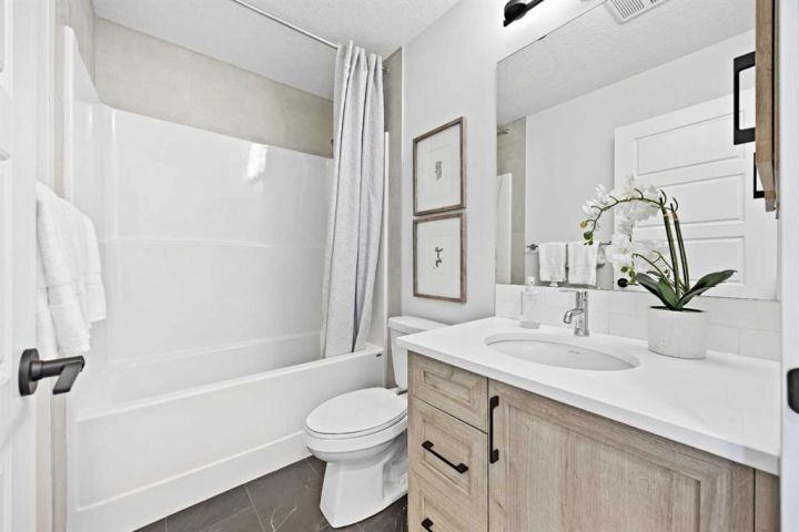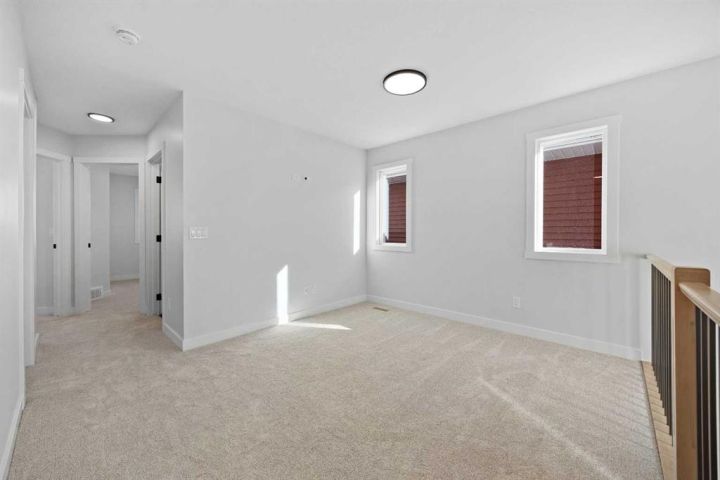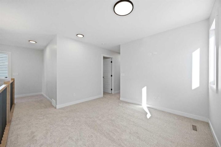 Welcome to the Montay in Cochrane’s Fireside community, offering 2,021 sq. ft. of living space with 4 bedrooms and 2.5 bathrooms. This home combines modern design with thoughtful upgrades that make day-to-day living easy. The main floor is anchored by a bright, open kitchen with quartz countertops, shaker cabinetry in Mistral with ebony wipe, a Blanco Silgranit sink in coal black, and a Boardwalk white matte backsplash. The island adds both seating and workspace, while the walk-through pantry and mudroom provide smart storage solutions. The connected dining, living, and great room spaces create the perfect setting for gatherings. Upstairs, the primary suite features a walk-in closet and private ensuite. Three additional bedrooms, a full bathroom, a versatile loft, and upper laundry complete the floor. Interior finishes include Cozy White luxury vinyl plank, Off Shore carpet, and an Origami White palette accented by fawn-stained railing. This home is built with flexibility in mind, featuring a side entry with basement rough-ins, a 9’ foundation, railing upgrades, and gas lines to both the range and BBQ. A double garage and rear lane access add convenience. Fireside is one of Cochrane’s most connected communities, known for its schools, local shops, and endless pathways that weave through parks and natural spaces. It’s a neighborhood designed for families and outdoor lifestyles, with quick access to Calgary and the mountains. Area size was calculated by applying the RMS to the blueprints provided by the builder.