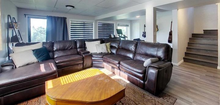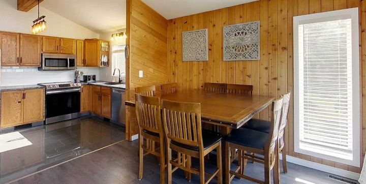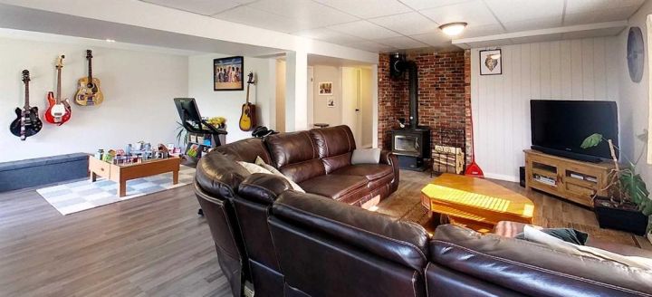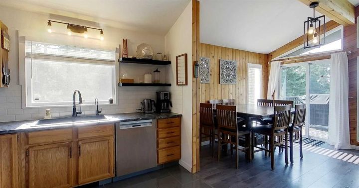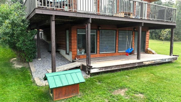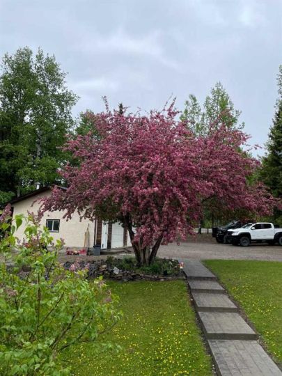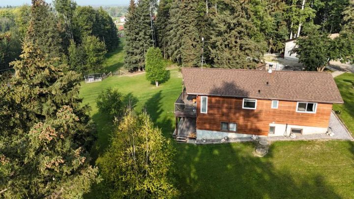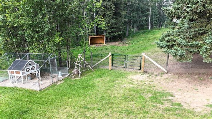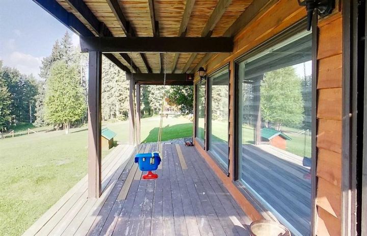 Stunning mountain views can be enjoyed right from the main living area or while sipping your morning coffee on the expansive 479 sq. ft. wrap-around deck. Just minutes from town, this property has been beautifully landscaped with rock and flower gardens, mature trees, a garden area, and natural growth that enhances the peaceful setting. The home itself has been lovingly updated and offers an inviting main floor with bright living space, two bedrooms, and a 4-piece bathroom. The fully finished walk-out basement adds even more living area with a spacious family room warmed by a wood stove, large primary bedroom with a 3-piece ensuite, a generous laundry room, and plenty of storage. Extensive renovations and modern upgrades have been completed, providing comfort and peace of mind for years to come. The home has seen some new windows and doors, fresh paint, flooring, and lighting, as well as central A/C, an energy-efficient furnace, shingles, and hot water tank updates. The heated 28x22 garage features upgraded man and overhead doors with new openers, while outside you’ll find a woodshed with attached tack shed. Additional features include reverse osmosis water, a recently serviced septic system, and annual road lease income of approximately $1,400. This property offers the perfect balance of natural beauty, functional living space, and modern convenience.