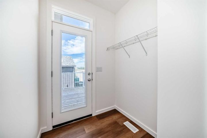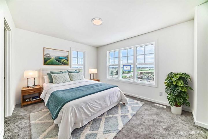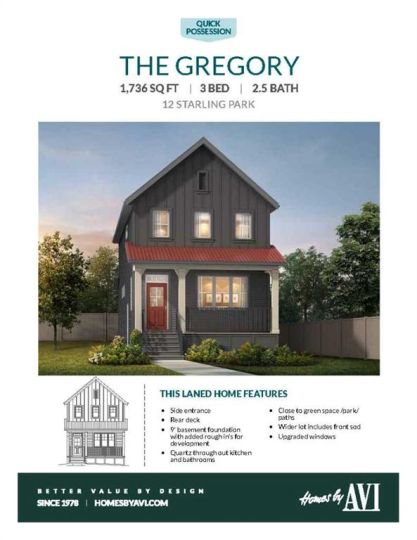 THIS HOME DOESN’T JUST MEET THE STREET—IT TAKES IT OVER, WITH WIDE, FANNED-OUT FRONTAGE THAT TURNS CURB APPEAL INTO A REAL PRESENCE. That unique lot shape gives the full-width porch more impact, distinguishes the home from its neighbours, and leaves you with a yard out front that FEELS GENEROUS instead of token. The geometry doesn’t just frame the house—it redefines how it lives. Inside, this Gregory model from Homes by Avi carries that sense of openness into the main floor. 9’ ceilings, luxury vinyl plank flooring, and a LARGE FRONT-FACING DEN give the entry sequence both polish and purpose. Sightlines run from the living room through to the kitchen and dining area, keeping each space connected without feeling crowded. The kitchen balances form and function with QUARTZ COUNTERS, 42" upper cabinets, a CHIMNEY HOOD FAN, Whirlpool appliances, and a gas line roughed-in for anyone who prefers cooking on flame. A SIDE ENTRY leads directly to the basement, future-ready with a 9’ foundation and plumbing rough-ins for easy development. Upstairs, a CENTRAL BONUS ROOM separates the secondary bedrooms from the master bedroom at the front of the home. And boy, was that bedroom built to retreat into: a FIVE-PIECE ENSUITE with DUAL SINK VANITY, a GLASS ENCLOSED SHOWER, and a SOAKING TUB that invites both ritual and relaxation. Quartz carries through every bathroom, and luxury vinyl tile makes weekend clean-up easy. Laundry is placed with intent on the upper level, streamlining daily routines and cutting out the back-and-forth. Back outside, the lot comes into play again. The broad front span offers a sense of scale and flexibility for landscaping or play, while the rear lane still provides convenience with a 20’ x 20’ gravel parking pad—ready for vehicles now and set for a future garage later. A gas line to the rear deck extends BBQ season, and sod in the front yard is also included. All of this is set in Starling, a northwest community designed with a nature-first mindset. PATHWAYS, PONDS, AND WIDE-OPEN SKIES define the plan, and the community emphasizes sustainable landscaping and glowing walkways. Add in QUICK ACCESS TO STONEY TRAIL, and you’ve got a setting that feels both tucked away and well within reach. Quick possession is available, so you don’t have to wait to CLAIM BOTH THE HOME AND THE UNIQUE LOT THAT SET IT APART. Book a showing and see for yourself what a front yard SHOULD be. • PLEASE NOTE: Photos are of a DIFFERENT Spec Home of the same model – fit and finish may differ. Interior selections and floorplans shown in photos.