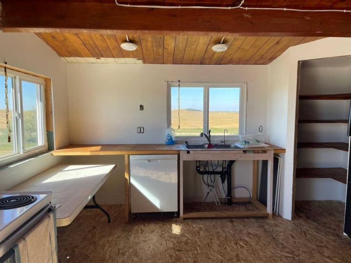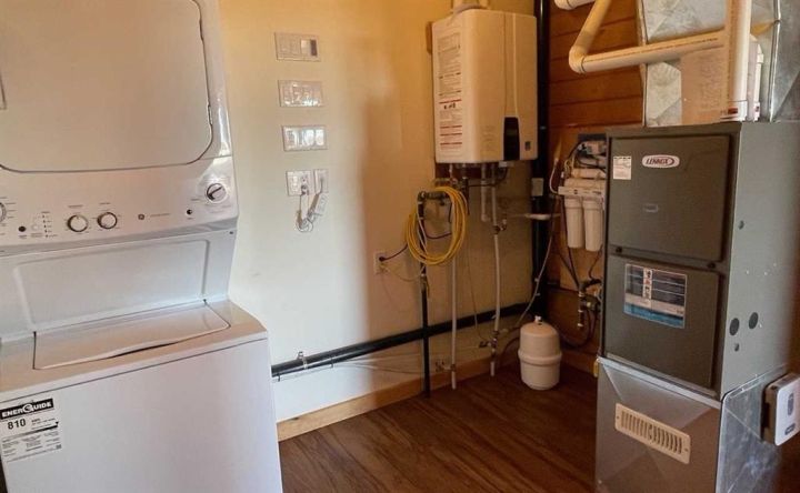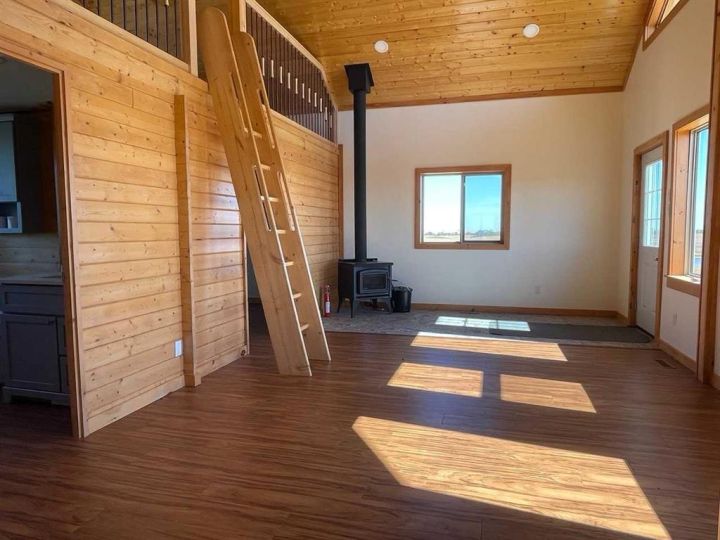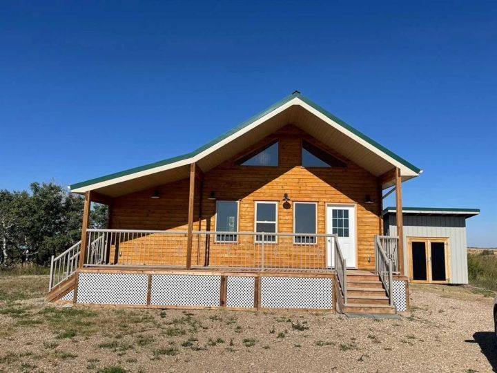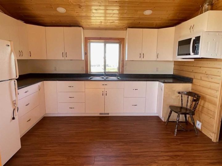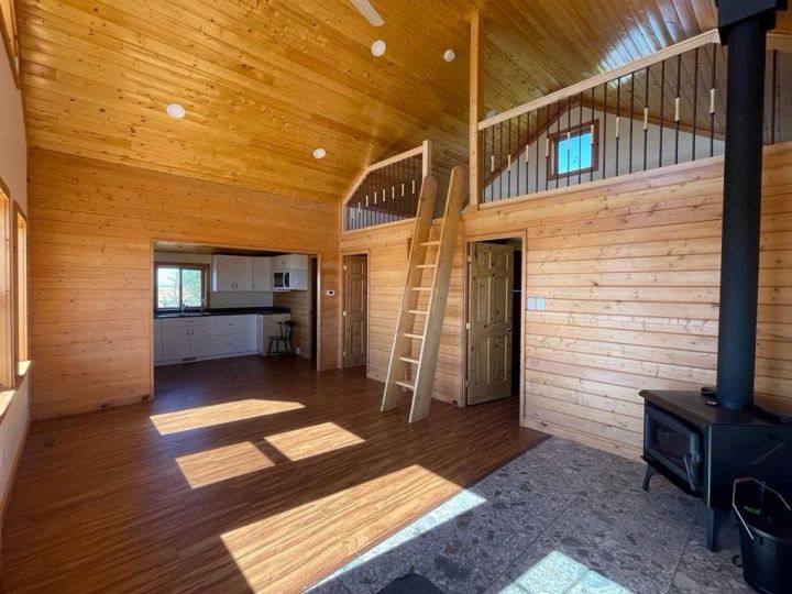 Situated north of Irma, this unique property offers 10 acres with two homes for the price of one, perfect for those seeking an off-grid lifestyle. The main residence is a 1,260 sq. ft. bungalow with renovations already started, including updated windows, wiring, a wood stove, and a durable metal roof. Inside, you’ll find two plus bedrooms and a full undeveloped walk-out basement, offering endless potential for customization. While the home does not have septic or central heating, it includes a chicken coop and an insulated, wired shed, making it ideal for hobby farming or self-sufficiency. The second home is a charming 763 sq. ft. A-frame built in 2023. This open-concept design features a bright kitchen, one bedroom plus a loft, and a three-quarter bathroom with a utility and laundry room. Cozy wood stove heating in the living room is complemented by propane heating and on-demand hot water, while the east-facing front deck is the perfect place to enjoy the morning sun. A metal shed adds extra storage. This property presents a rare opportunity to live simply, sustainably, and surrounded by nature. Discover the freedom of country living—where two homes, 10 acres, and endless possibilities await your vision.