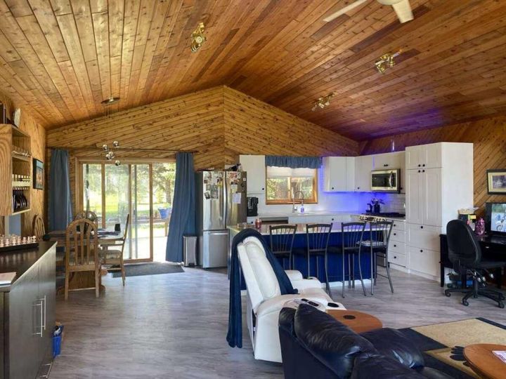 For more information, please click the "More Information" button. This elevated lot offers wonderful views of Pigeon Lake and is just steps away from the lake access. The warmth and charm of Cedar-lined vaulted ceilings throughout the open concept main living area are showcased by abundant lake-facing windows. Newly renovated 4-season lake house with 4 LG stainless appliances (gas stove) in the kitchen as well as a new stacked washer and dryer on the main floor. A newly built gas fireplace has a live-edge mantle. The guest bedroom fits a king-sized bed and is across from the main bath. The kitchen has new quartz countertops and a big island with seating for four. All windows have blinds. New flooring throughout the main storey, and the basement has carpet. The warmth and charm of cedar-lined vaulted ceilings throughout the open concept main living area are showcased by abundant lake-facing windows. South-facing tree-lined backyard offers a firepit with benches and a spacious deck with gazebo. New gas furnace and water heater installed 3 years ago; the roof was done in 2017.