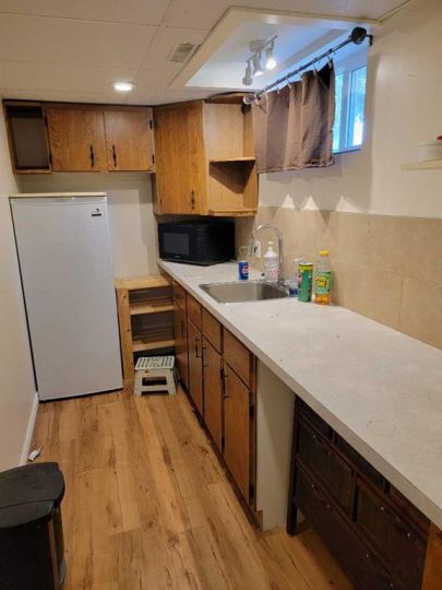 This well-built, character-filled bungalow offers the perfect blend of classic charm and modern updates. The bright, upgraded kitchen features granite countertops, new cabinets, and many newer windows that fill the home with natural light. Stylish newer fixtures are found throughout. With two full 4-piece bathrooms—one on each level—this home is as functional as it is inviting. The fully finished basement includes a large bedroom, kitchenette, private entry, and its own bathroom, making it ideal for guests, extended family, or rental income. Outside, enjoy a beautiful yard with mature fruit trees, storage sheds, and a single detached garage. There’s plenty of parking both in front and at the back of the property. A rare find that combines space, versatility, and timeless appeal—ready for you to move in and make it your own.