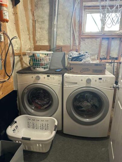Fridge, stove, microwave, washer, dryer, shed