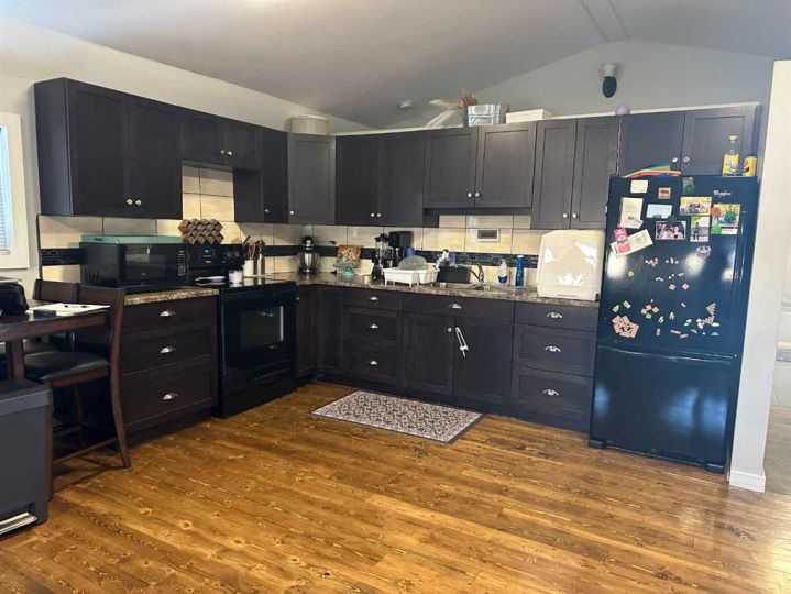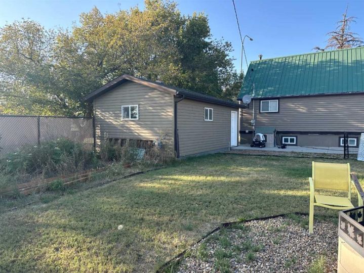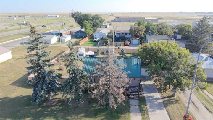 Looking to escape the city? Check out this cute 2 bedroom, 2 bathroom gem! Located in Vauxhall, just 20 mins from Taber on a large mature 100' lot allowing plenty of space for a second garage, a large garden or simply enjoy the space! The home shows pride of ownership and has an open floor plan on the main level with a bedroom and 4pc bath as well. A second bedroom, 2pc bath and family room along with the laundry space are located in the lower level. With a long driveway and a single detached garage, there's ample parking space. You'll find a gas line for a BBQ on the front deck, a metal roof and pvc windows. Vauxhall offers restaurants, a grocery stores, law office, bank, K-12 school, tennis courts, outdoor pool, arena and well known baseball academy.
