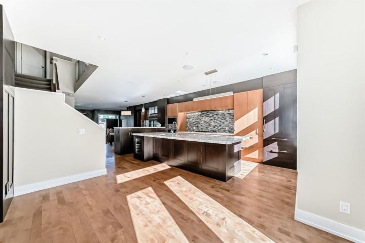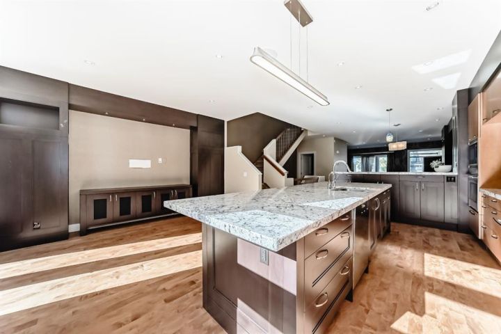 OPEN HOUSE SAT. OCT. 11. 2:00-4:OO This warm and inviting home with over 3200 sf of developed living space was built for entertaining with both spectacular City views and a private garden oasis. Natural hardwood runs throughout the cozy main floor. The living room with a gas fireplace and rich custom drapery leads up a few steps to the Dining room featuring high quality illuminated built-ins. The big bright sunny kitchen was designed and built by Empire Kitchens and has both a huge island and a peninsula offering yet more storage space. With granite counter tops, stylish two toned cabinets, Wolf gas stove top with warming drawer, built in ovens, Subzero fridge, dish washer, beverage fridge and water filtration system this is a chefs dream. A family room with double doors opens to a magical South facing outdoor living space which features a beautiful sloped rock garden with a waterfall. The 400 sf patio w/gas hook up is surrounded by greenery and mature trees. It is fully fenced and showcases an exotic Kayu wooden dividing wall. Upstairs, off the primary bedroom which has a second gas fireplace, enjoy morning coffee from your private deck over looking the City. The five piece en-suite has two separate vanities, a soaker tub and heated floors. Two more bedrooms (one fitted out with custom built-ins currently acts as a second walk in closet) a four piece bath and laundry room complete this floor. The top level includes a convenient wet bar with granite countertop and boasts its own dishwasher and wine fridge. It's a perfect space for the family to gather and opens to the amazing appox. 280 sf roof top patio with stunning views of the City and downtown skyline. The lower level offers more versatile spaces which could be used as yet another family room plus an office or work out area with in-floor heating. A separate room has just been turned into a storage space with $5000 worth of built-ins by Californian Closet. The heated double attached garage is just down the hall and also includes a California Closet storage unit . This special home is located in vibrant sought after walkable Marda Loop with shopping, restaurants and just about every service one could need. Enjoy the central A/C, the wired in Sonos sound system which can be accessed inside and out, vacuflow, hot water on demand, humidifier, a soft water system & sprinkler system - all designed with comfort and easy in mind. Note: the entire interior of this home was recently painted, the front door and many windows were replaced in 2024.