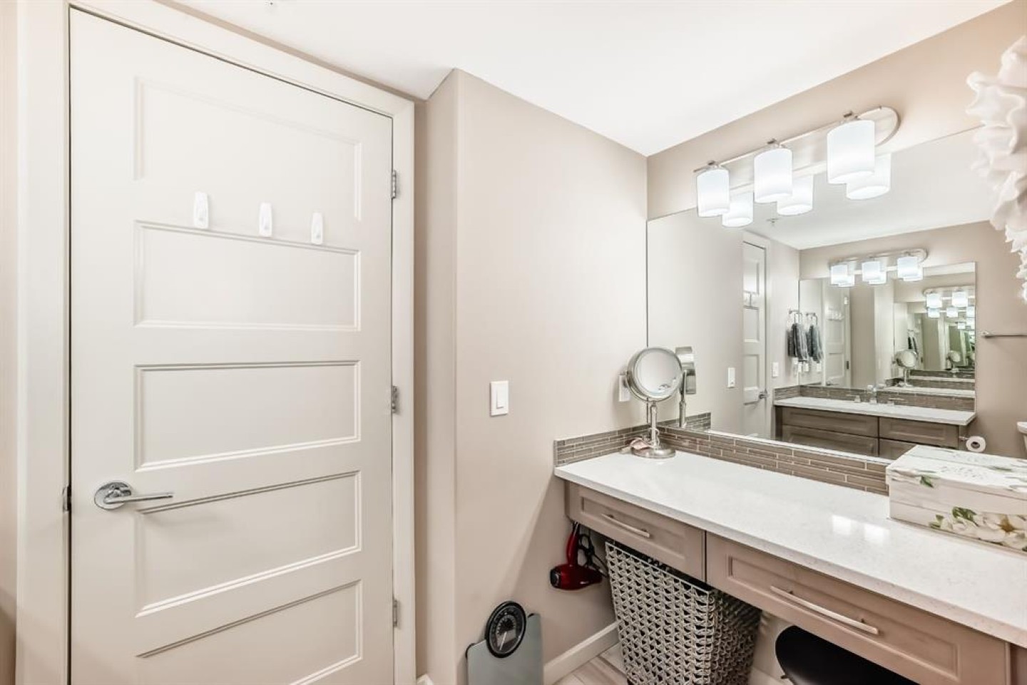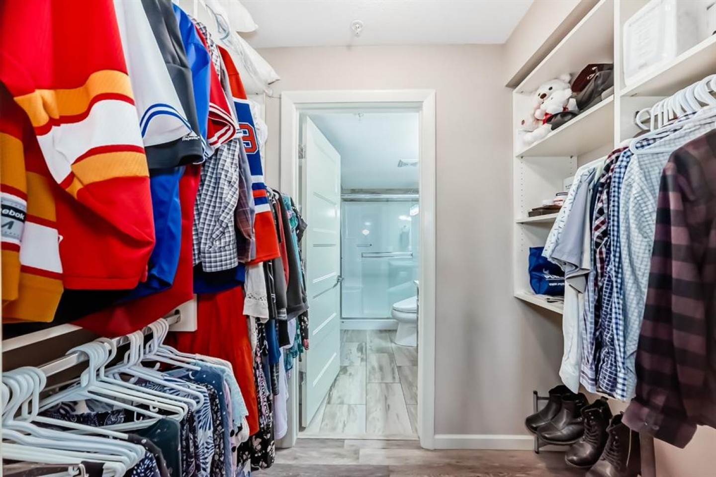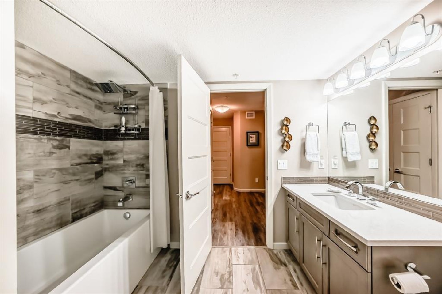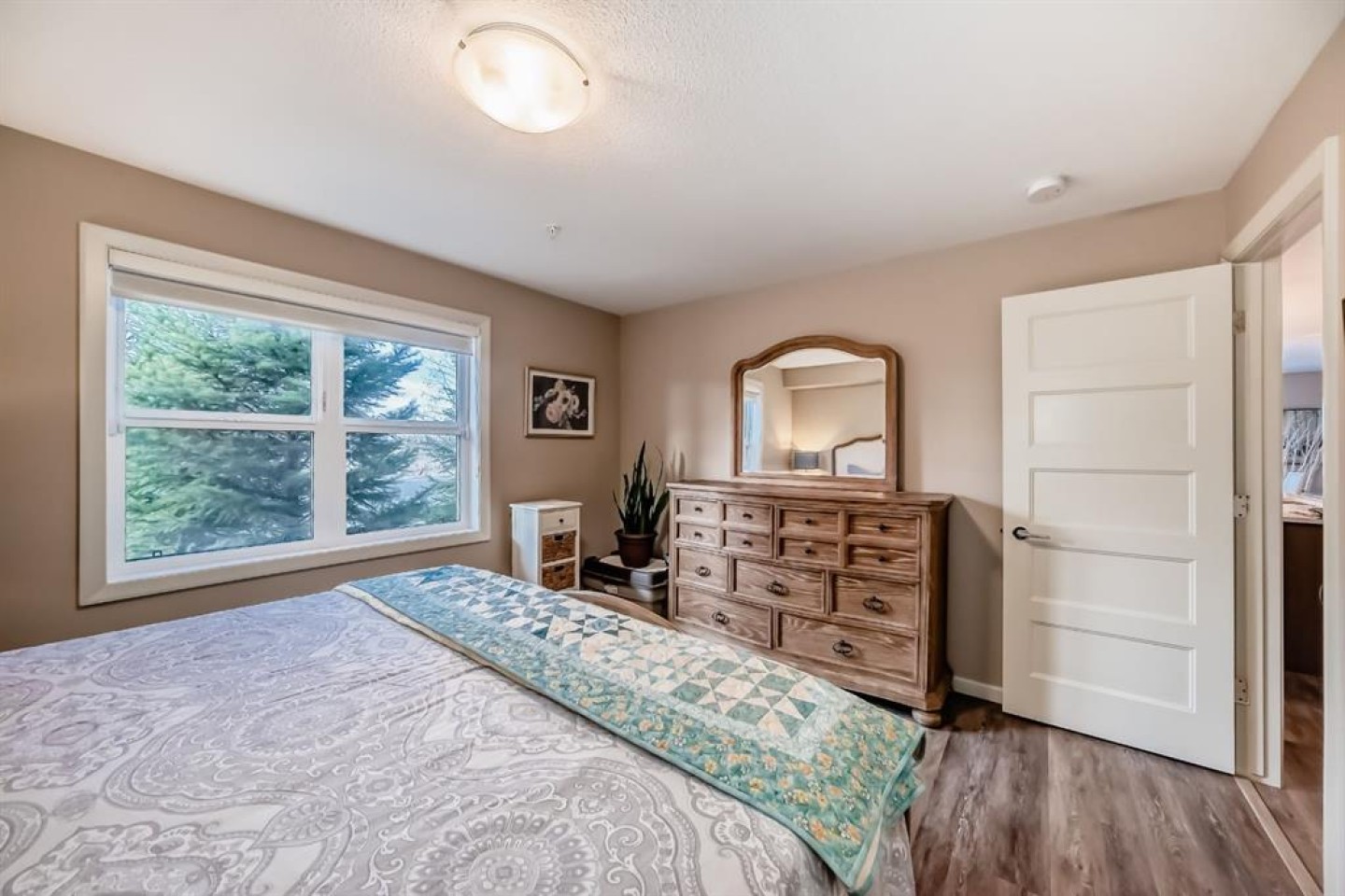 Welcome to The Chateaux at King’s Heights — Airdrie’s premier 55+ condominium, where luxury, comfort, and convenience come together. This exceptional corner suite is the LARGEST unit in the building, showcasing two spacious bedrooms, a bright den, and a sun-soaked south-facing layout designed for elegance and ease. Every detail has been elevated with the Alto Premium Upgrade Package and over $35,000 in additional enhancements, including upgraded tile and cabinetry, luxury vinyl plank flooring, a stunning floor-to-ceiling stone gas fireplace, in-floor radiant heating, air conditioning, a garburator, and a full alarm system with window and door sensors plus keypad entry on both exterior doors. The gourmet kitchen features solid maple shaker cabinetry, energy-efficient stainless-steel appliances, a 21-cu.-ft. refrigerator with glass shelving, and quartz countertops that flow seamlessly into the open-concept dining and living area. Oversized windows flood the space with natural light, high ceilings and a large south-facing balcony with a natural gas BBQ hookup create an airy, inviting retreat. Both bedrooms are generously sized, with the primary bedroom offering a walk-through closet and private 3-piece ensuite complete with a vanity and spa-inspired finishes. The versatile den provides extra space for an office or flex use, and the in-suite laundry includes custom built-in shelving for added storage. Enjoy the convenience of TWO TITLED parking stalls — one secure underground heated stall with an attached private storage locker and a second titled outdoor stall (valued at $9,500). The building offers secure underground access, bike storage, a beautifully landscaped courtyard, and a well-maintained common area with elevator service, a welcoming lobby, and pressurized hallways for quiet, comfortable living. Perfectly located in the heart of King’s Heights, this address offers the best of Airdrie right at your doorstep. Stroll to Save-On-Foods, Shoppers Drug Mart, local banks, and everyday conveniences — or meet friends for coffee at La Table or Starbucks, a glass of wine or dinner at Abes, Vapiano Cucina Italian or dessert at just down the street. Nearby, you’ll find a gym/yoga studio, salons, dental and medical clinics, and beautiful walking paths and ponds that wind through the community. Known for its friendly residents, social gatherings, and worry-free lifestyle, The Chateaux offers the perfect balance of elegance, practicality, and community.